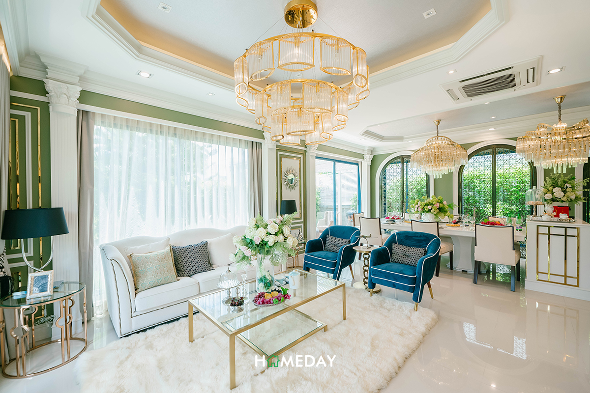 • บ้านเดี่ยว 2 ชั้น หรูหราลงตัวในสไตล์คลาสสิก ครบครันทุกฟังก์ชันการอยู่อาศัยสำหรับทุกคนในครอบครัว พื้นที่ใช้สอยสูงสุดถึง 300 ตร.ม. พร้อมที่จอดรถ 3 คัน และห้องนอนมากถึง 5 ห้อง
