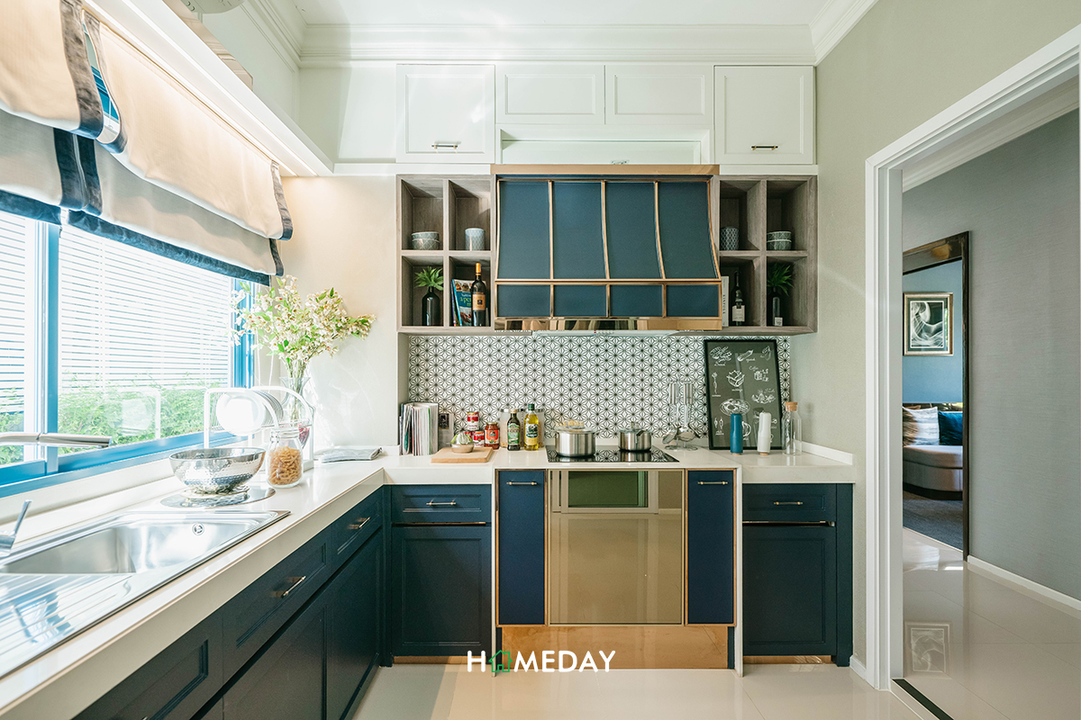 มาถึงส่วนครัวกันบ้างค่ะ ภายในให้พื้นที่วางเคาน์เตอร์ครัวมาเยอะเลยค่ะ สามารถวางเคาน์เตอร์แบบเข้ามุมตัว L ได้เลย ภายในมีบานหน้าต่างสำหรับเปิดระบายอากาศมาไว้ให้แล้ว แต่ถ้าใครชอบทำครัวหนัก ๆ ทำอาหารเองเป็นประจำทุกมื้อ จะติดตั้ง Hood ดูดควันเพิ่มก็ได้ค่ะ บอกเลยว่ามีพื้นที่เหลือสำหรับทุกฟังก์ชันการใช้งานแน่นอน