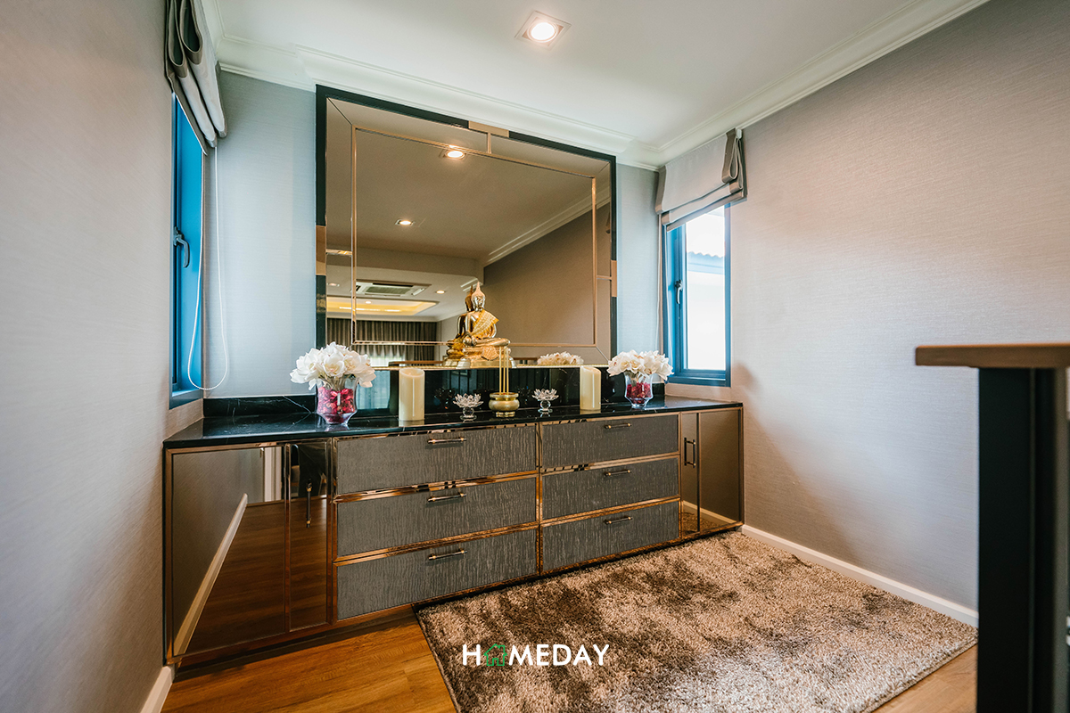 • 4 ห้องนอน, 4 ห้องน้ำ, 3 ที่จอดรถ, 1 ห้องรับแขก, 1 ห้องอาหาร, 1 ห้องครัว, 1 ห้องอเนกประสงค์ และ 1 ห้องพระ