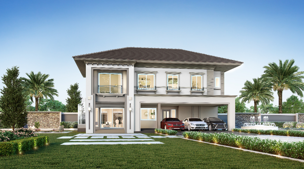 พื้นที่ใช้สอย 275 ตร.ม. 4 ห้องนอน 3 ห้องน้ำ 1 ห้องรับแขก 1 ห้องรับประทานอาหาร 1 ห้องครัว 2 ห้องเอนกประสงค์ 3 ที่จอดรถ