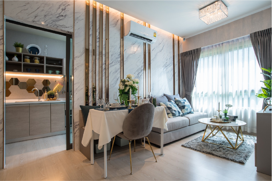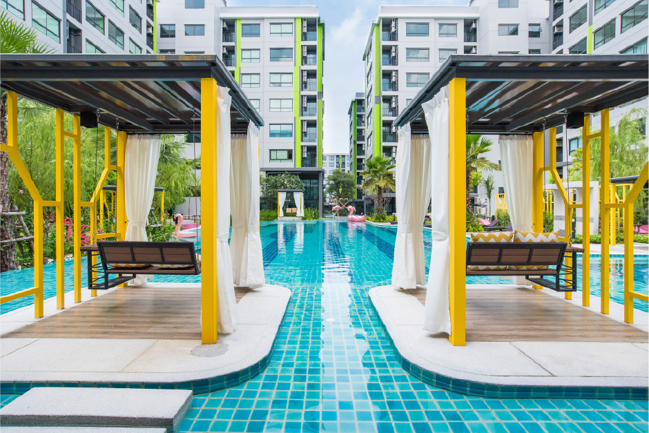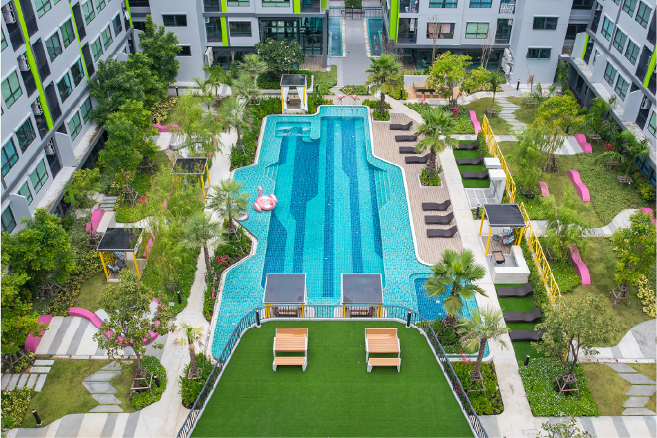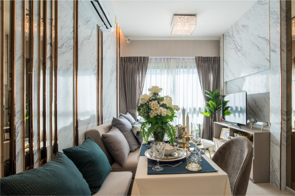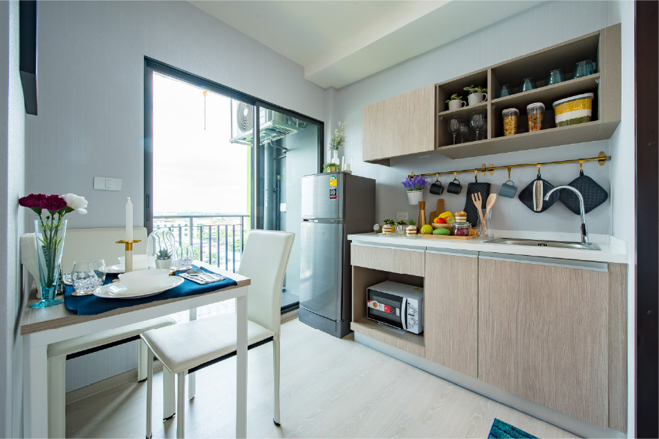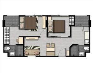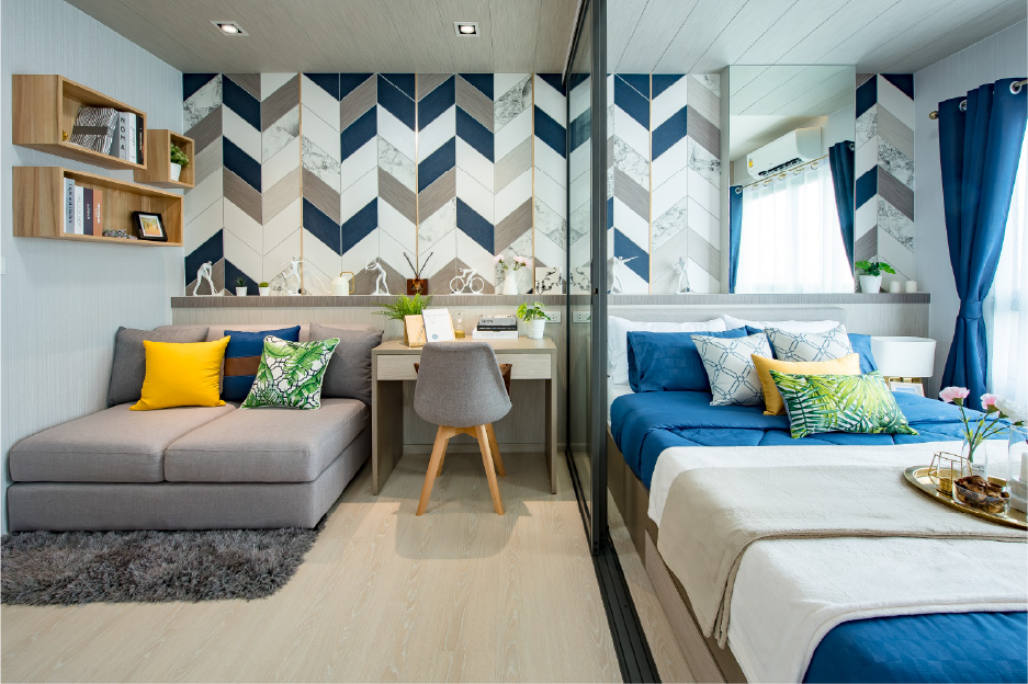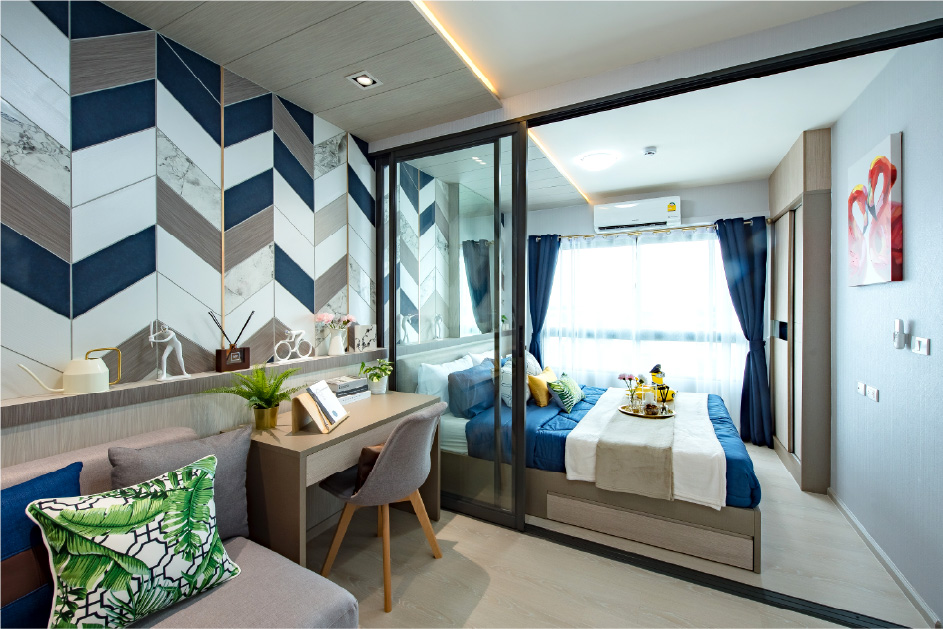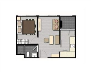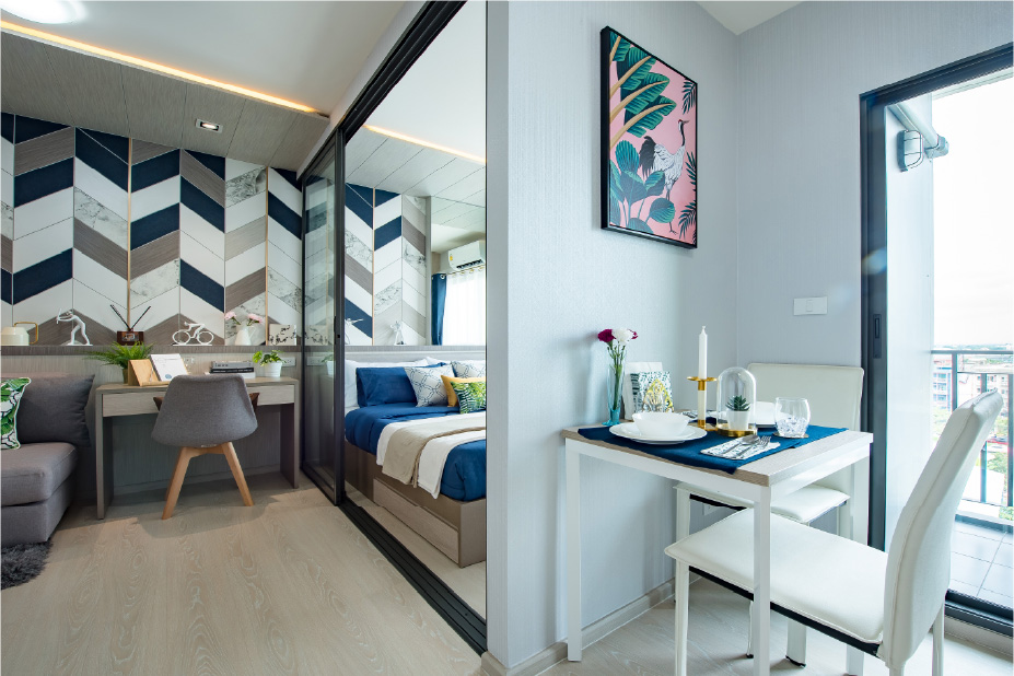แบบห้อง แบบห้อง : Type A1 ขนาดยูนิต 25ตร.ม. 1ห้องนอน 1ห้องน้ำ 1ห้องครัว 1ห้องนั่งเล่น แบบห้อง : Type B2 ขนาดยูนิต 38ตร.ม. 2ห้องนอน 1ห้องน้ำ 1ห้องครัว 1ห้องนั่งเล่น