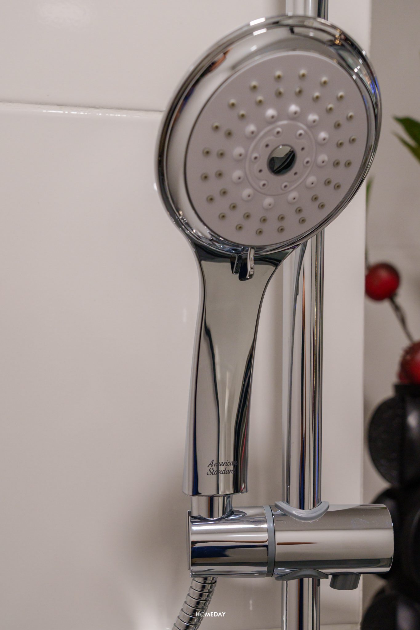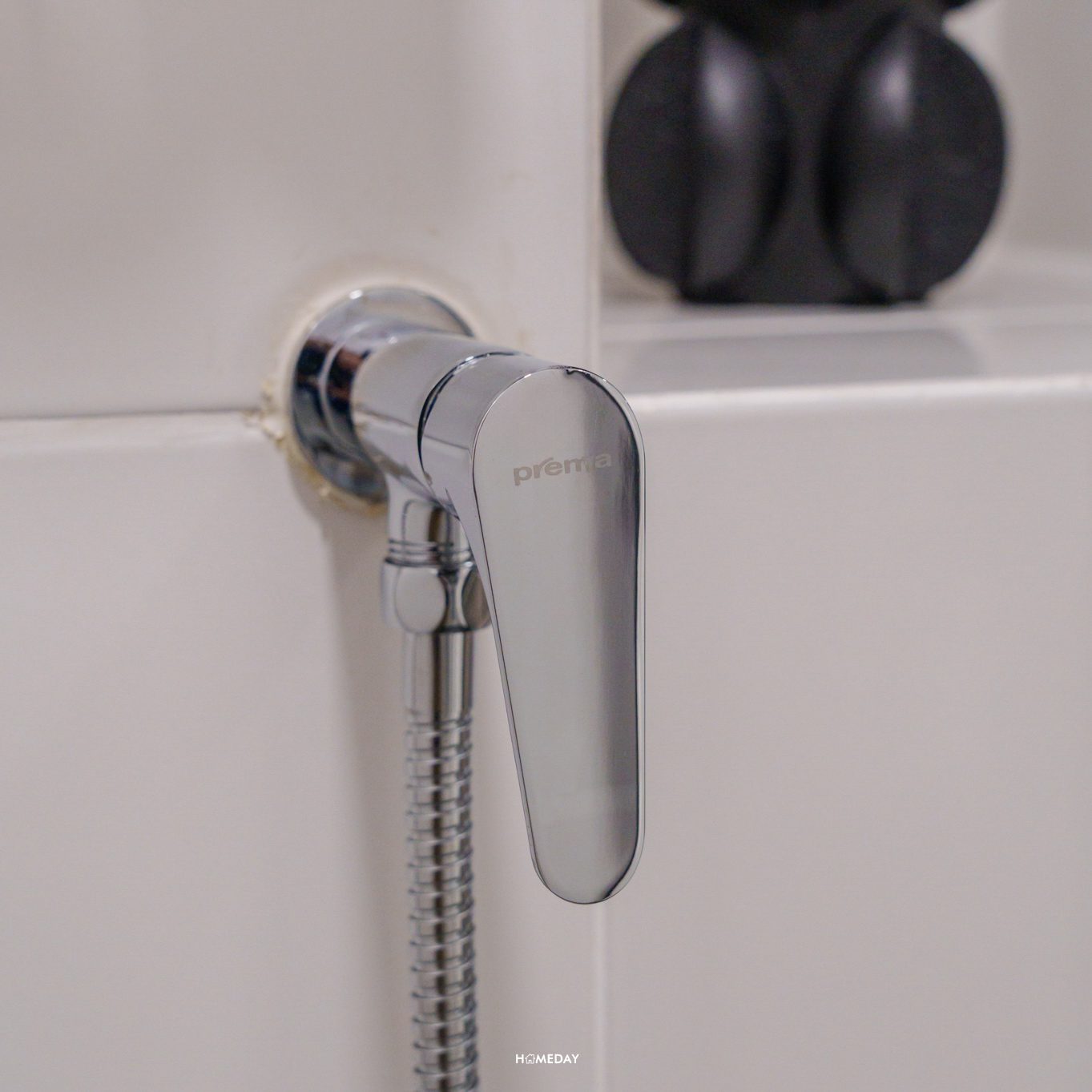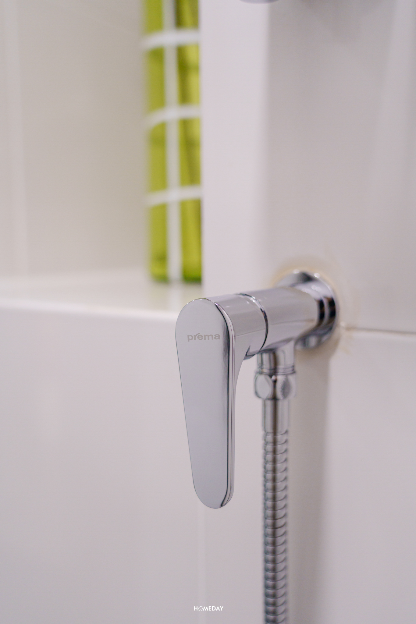 ภายในห้องน้ำ แบ่งโซนเปียกและแห้งชัดเจน พร้อมติดตั้ง ฉากกั้นกระจกมาให้เรียบร้อย และที่น่าสนใจคือ ด้านในมีก๊อกน้ำแบบ 2 วาล์ว แยกหัวฝักบัวสำหรับเจ้าของห้องและสำหรับน้องหมาน้องแมวโดยเฉพาะ ใช้งานง่าย สะดวกแน่นอน ในส่วนของชุดสุขภัณฑ์และอุปกรณ์ภายในห้องน้ำ ก็ให้มาตามมาตรฐานโครงการ พร้อมเดินระบบรองรับการติดตั้งเครื่องทำน้ำอุ่นไว้ให้เรียบร้อยแล้วครับ เรียกได้ว่าครบ พร้อมใช้งานจริงทั้งคนและน้องสัตว์เลี้ยงเลยครับ