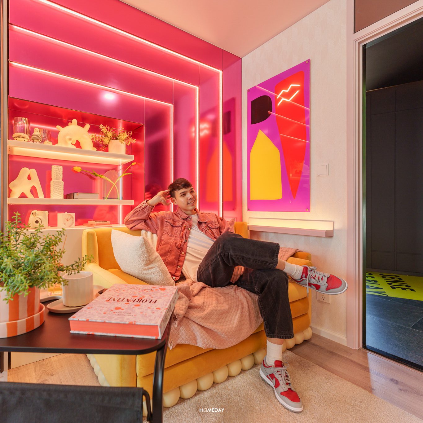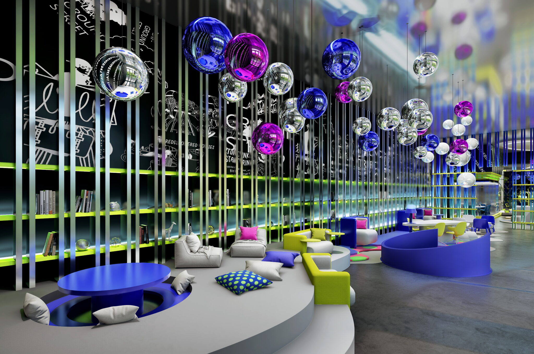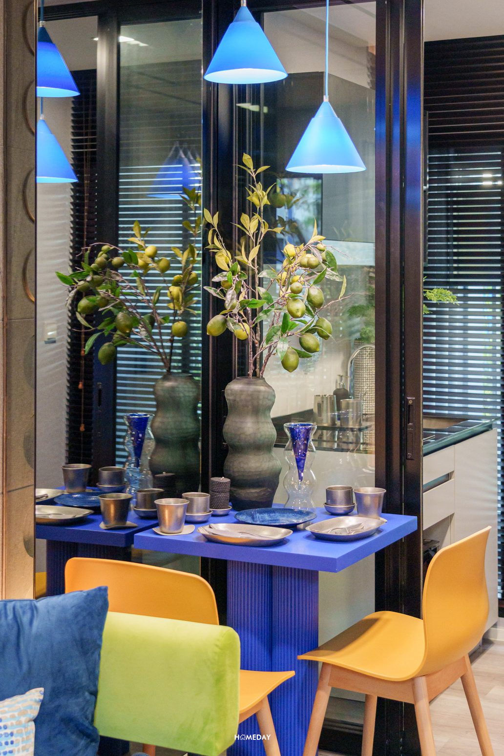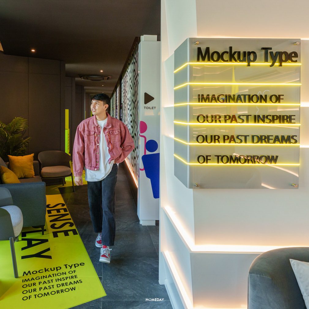 ก้าวแรกที่เข้ามาในสำนักงานขาย บรรยากาศที่รับรู้ได้ทันทีไม่ใช่ความอบอุ่นแบบบ้าน แต่มันคือ ความสนุกแบบเต็มสปีด ที่สดใส สมชื่อ Playground ทุกดีเทลตั้งแต่โทนสี การจัดแสง ไปจนถึงการเลือกใช้เฟอร์นิเจอร์ ล้วนสะท้อนความตั้งใจของโครงการที่อยากสร้างพื้นที่ให้คนรุ่นใหม่ “รู้สึกสนุกกับการอยู่อาศัย” โซนต้อนรับตกแต่งในธีมเดียวกับ The Beast’s Library พื้นที่อ่านหนังสือในโครงการจริง ที่มี มาสคอตก๊อตซิล่าสีน้ำเงิน ยืนโดดเด่นอยู่กลางห้อง เติมบรรยากาศความขี้เล่นในแบบที่หาไม่ได้จากคอนโดทั่วไป และนี่คือเสน่ห์ที่ Kave Playground ที่อยากจะสื่อความเป็นคอนโดสำหรับคนรุ่นใหม่ ที่ไม่ได้แค่ “น่าอยู่” แต่ยัง “น่าเล่น” ด้วย