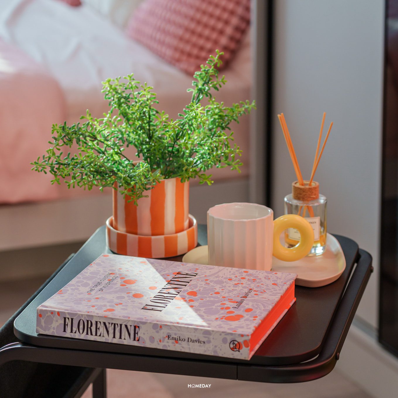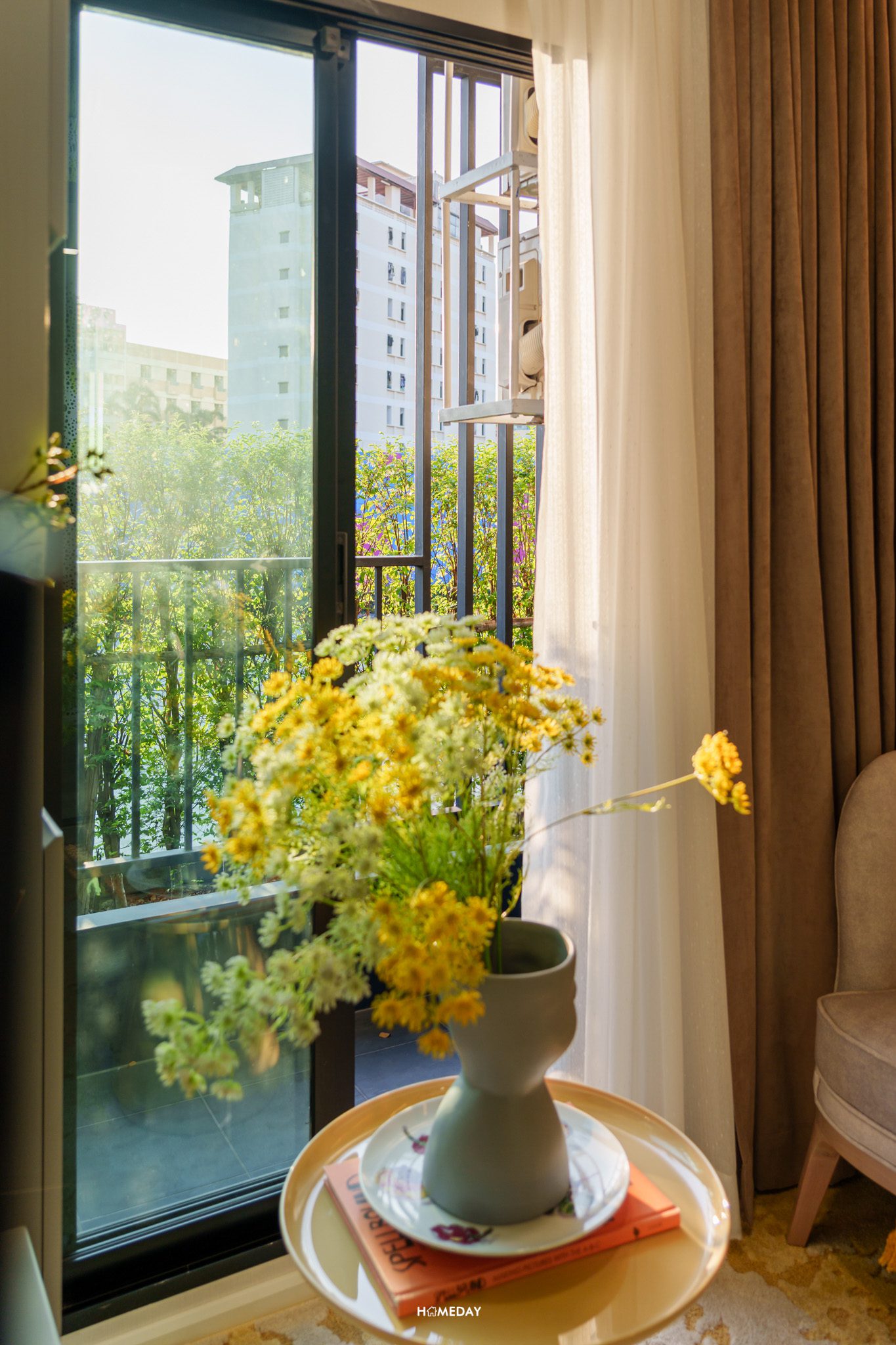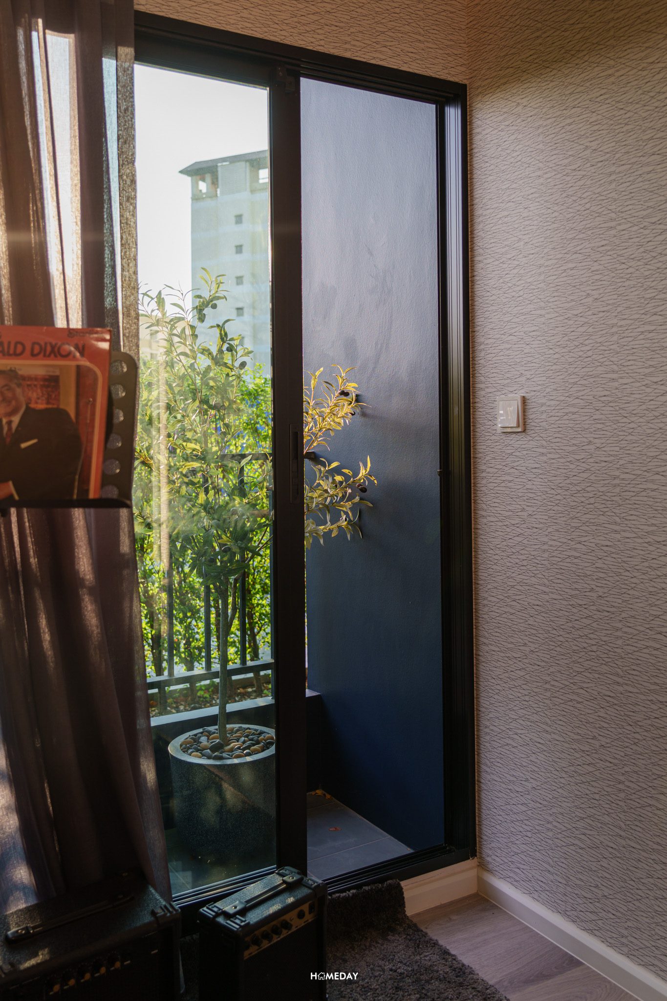 ตำแหน่งห้องนี้อยู่ติดกับระเบียง ที่สามารถเปิดออกไปชมวิวได้ เพิ่มทั้งแสงธรรมชาติและอากาศถ่ายเทหรือถ้าใครชอบปลูกต้นไม้ ก็จัดเป็นมุมสวนแนวตั้งเล็ก ๆ หรือมุมพักผ่อนปลูกต้นไม้ในกระถางได้เลย เพิ่มความสดชื่นให้กับห้องแบบง่าย ๆ ได้เลย