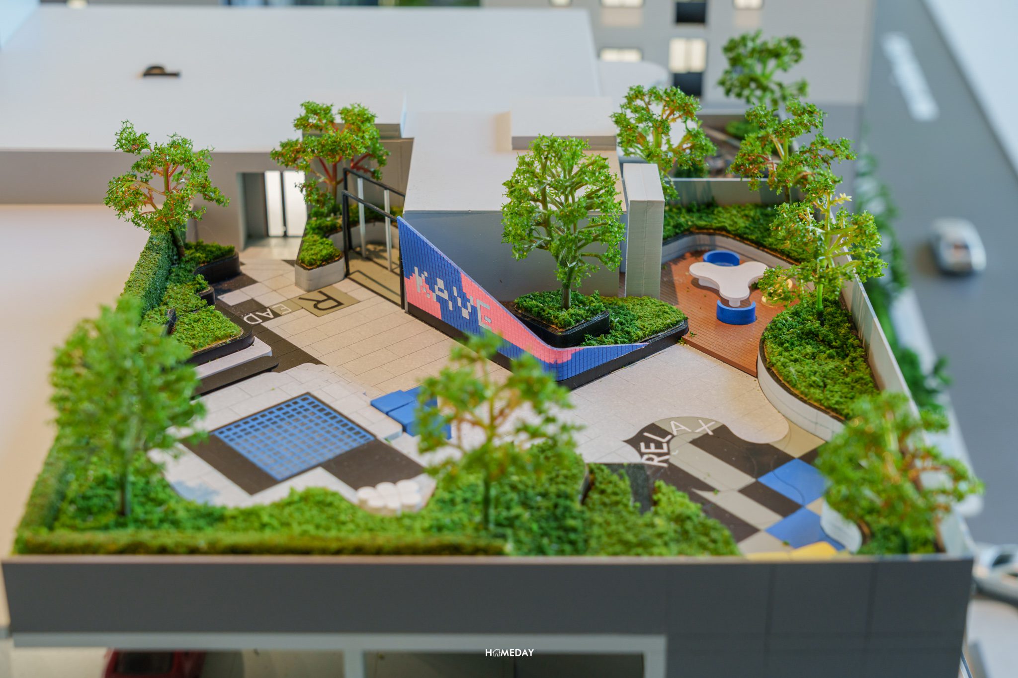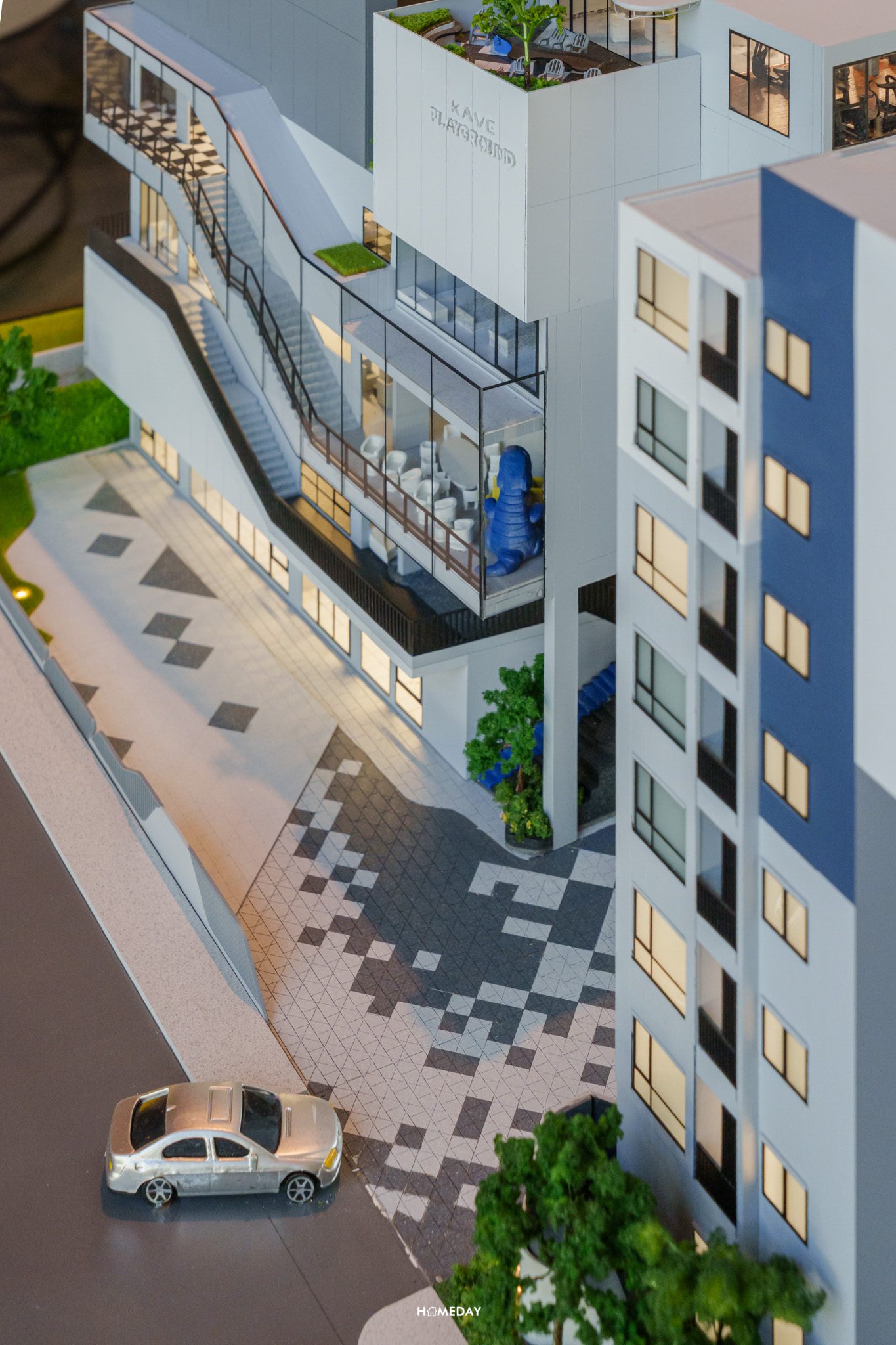 ก่อนจะพาไปดูห้องตัวอย่างที่มีให้ชมถึง 4 แบบ ตั้งแต่ห้อง Studio ไปจนถึง 1 Bedroom Plus ที่จัดเต็มทั้งฟังก์ชันและพื้นที่ เดี๋ยวเราแวะมาดูโมเดลโครงการและโซนส่วนกลางกันก่อนครับ จะได้เห็นภาพรวมว่า Kave Playground วางผังยังไง แต่ละอาคารอยู่ตรงไหน แล้ว Facility ที่ว่าแน่นที่สุดในย่าน…แน่นยังไง? ไปดูพร้อมกันเลยครับ
