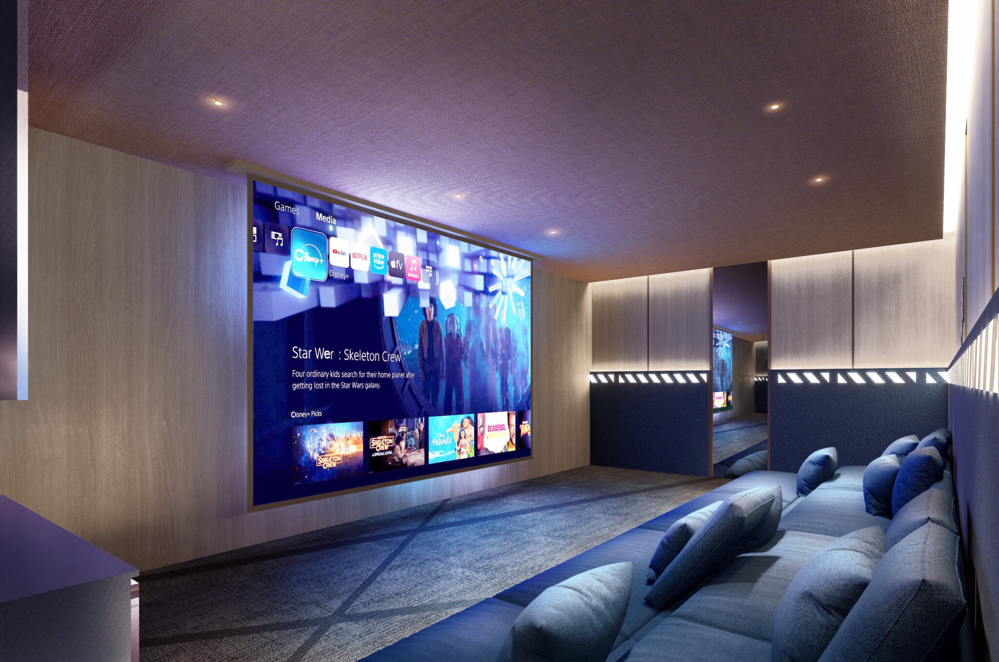 ภาพจำลองบรรยากาศของ Room Theatre มุมดูหนังสุดชิล ที่ให้เรานั่งดูหนัง ซีรีส์ หรือคอนเสิร์ตกับเพื่อนได้แบบเต็มอรรถรส เหมือนยกโรงหนังส่วนตัวมาไว้ในคอนโด ไม่ต้องฝ่ารถติดไปห้างก็ดูเพลินได้ทุกวัน