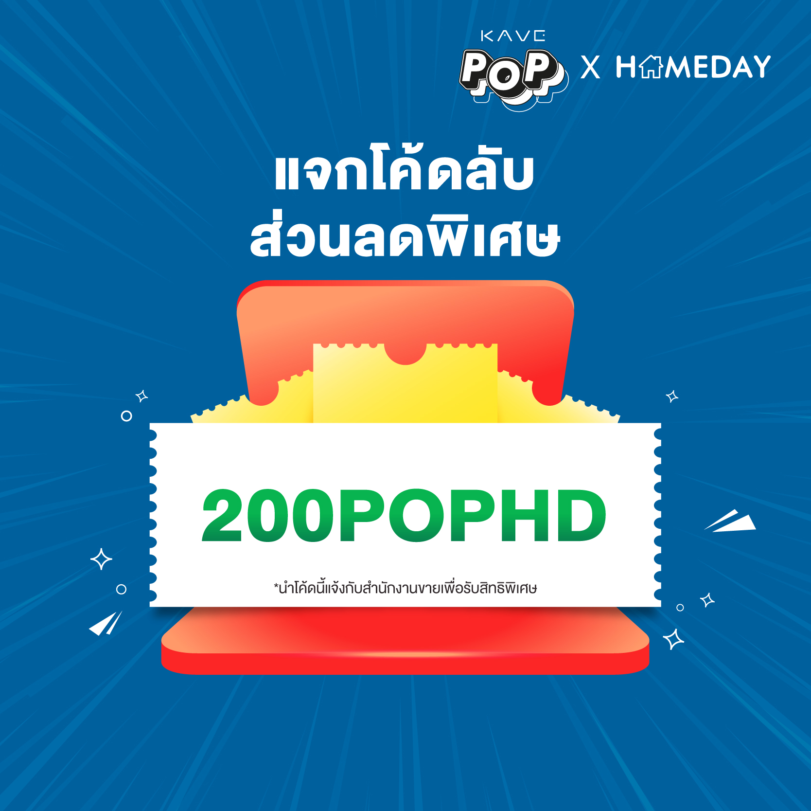 พิเศษสุดๆเฉพาะผู้ติดตาม Homeday เพียงนำโค้ดนี้ไปจองคอนโด Kave Pop Salaya