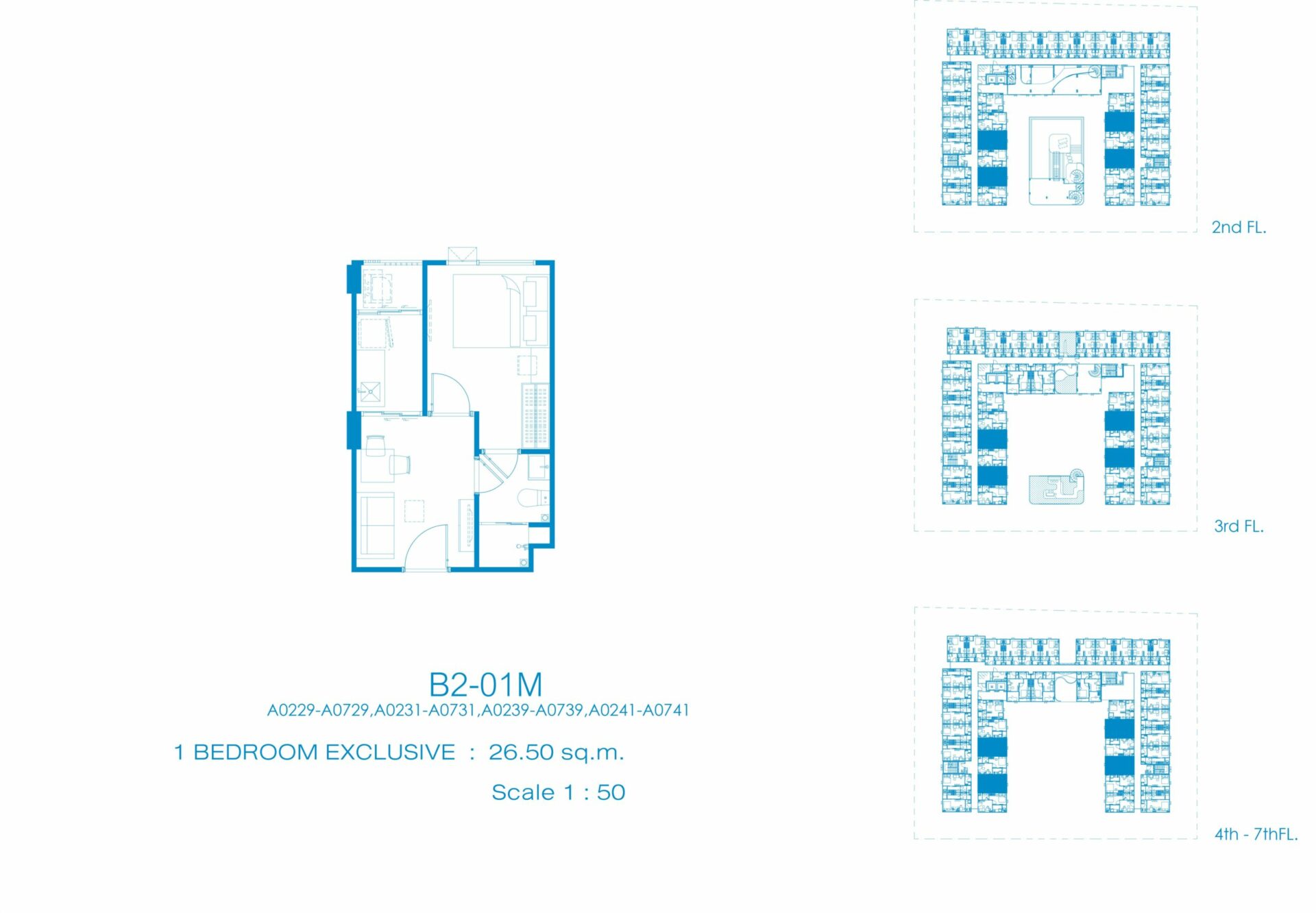 แบบห้อง : 1 Bedroom Exclusive 26.50 Sq.m. • พื้นที่ใช้สอย : 26.50 ตร.ม.