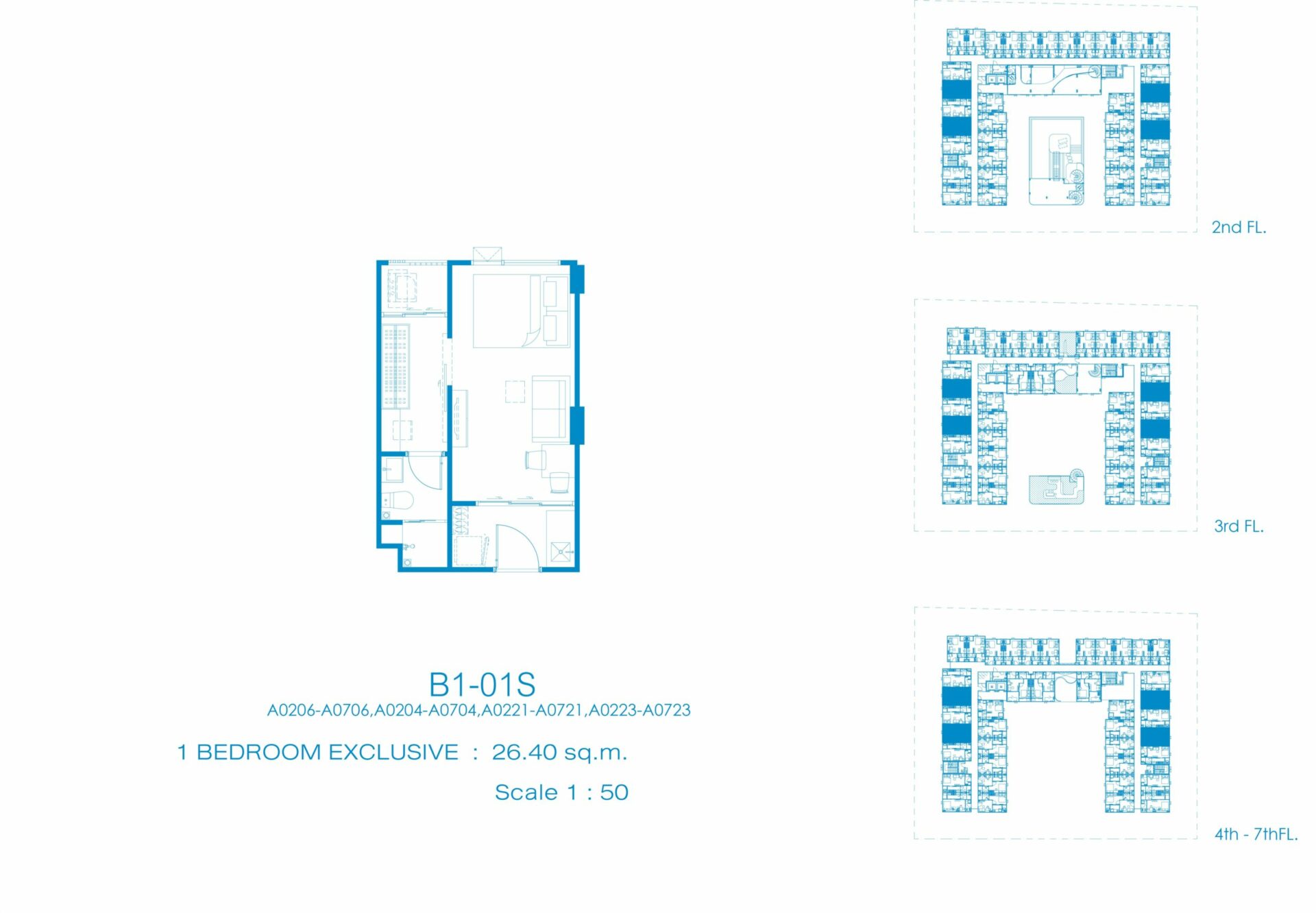 แบบห้อง : 1 Bedroom Exclusive 26.40 Sq.m. • พื้นที่ใช้สอย : 26.40 ตร.ม.
