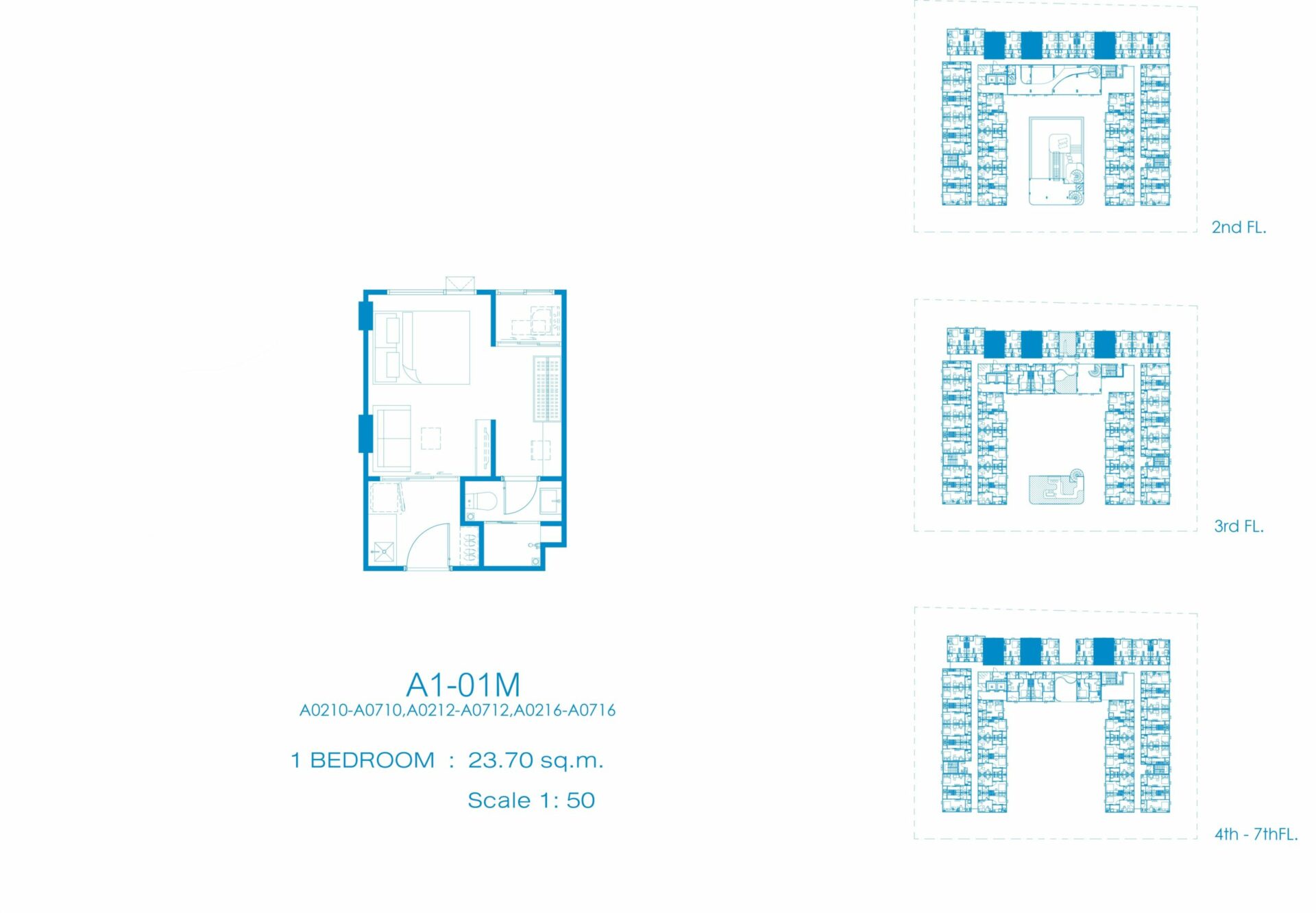 แบบห้อง : 1 Bedroom 23.70 Sq.m. • พื้นที่ใช้สอย : 23.70 ตร.ม.