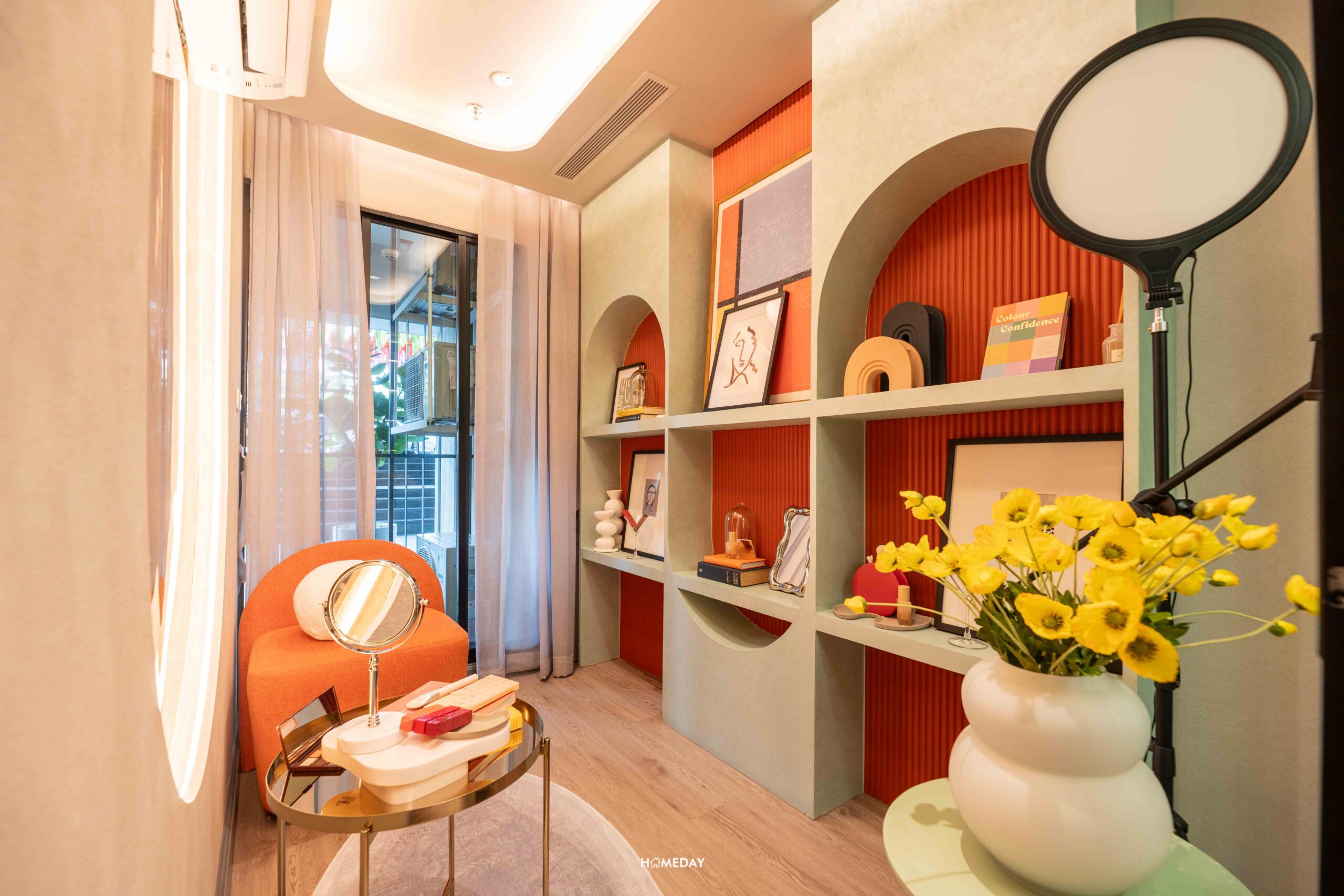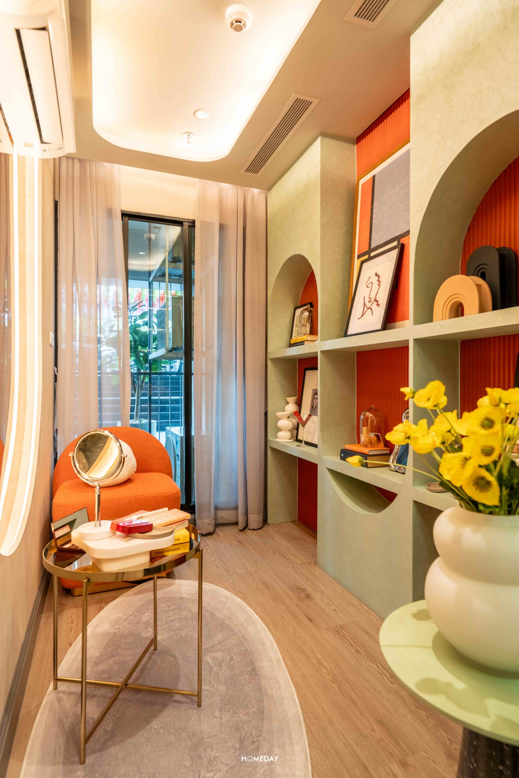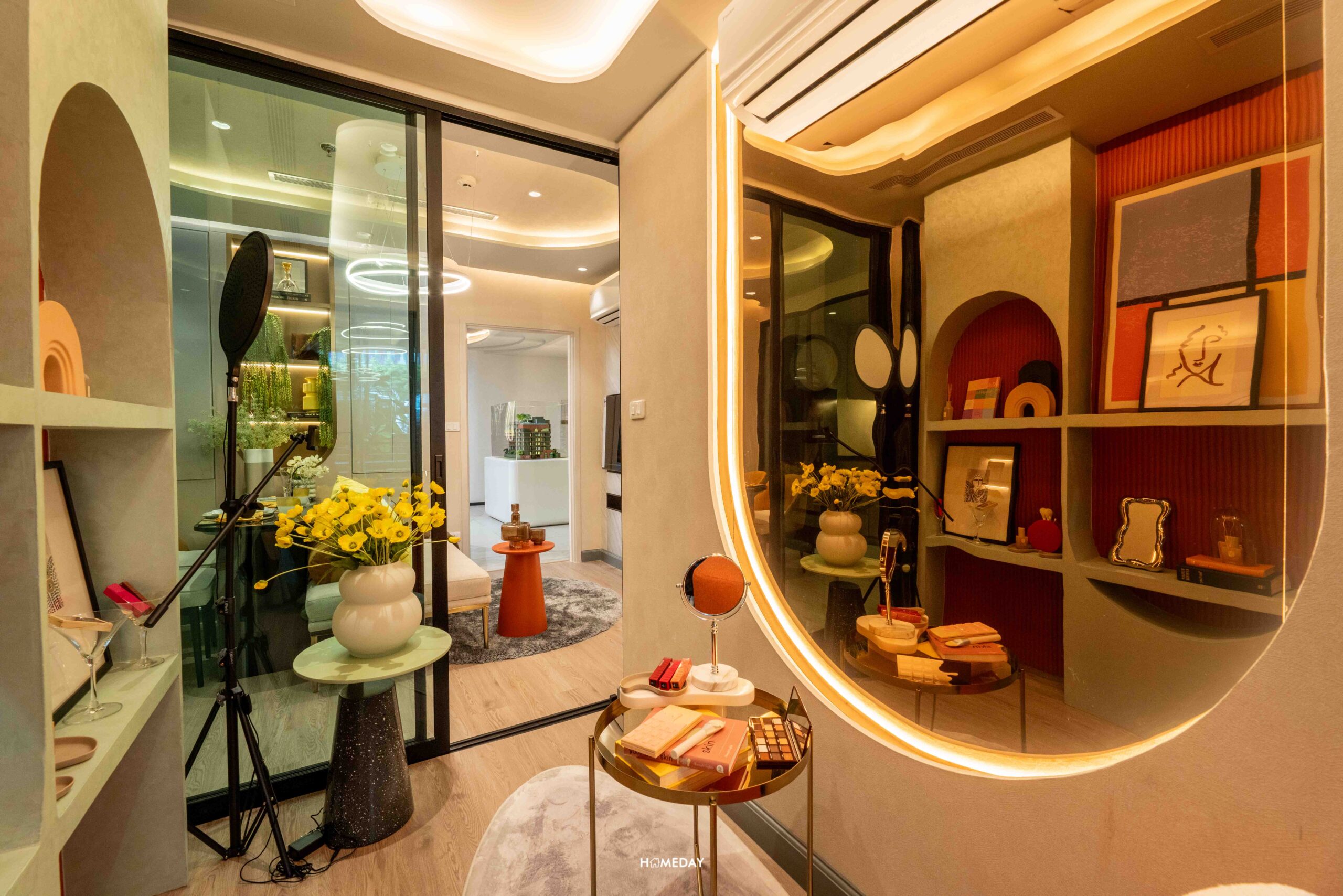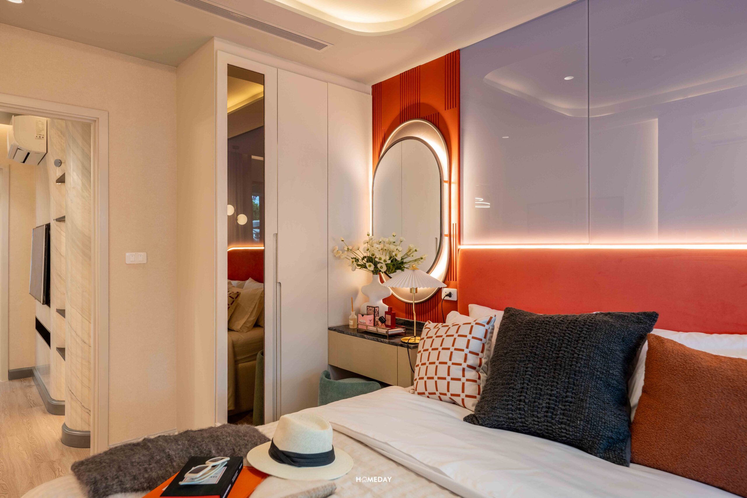 ออกมาจากห้องนอน มากันตรงพื้นที่ระหว่างห้องน้ำและห้องครัว ห้องตัวอย่างออกแบบมาให้ดูเป็นไอเดีย บิลต์อินโต๊ะเครื่องแป้ง พร้อมกระจกเงาบานใหญ่ได้ หรือจะทำเป็นโซนทำงาน WFH บิลต์อินตู้เสื้อผ้าแบบ Walk-in Closet ที่เชื่อมต่อกับห้องน้ำได้อย่างสะดวก ก็สามารถทำได้เช่นกันครับ