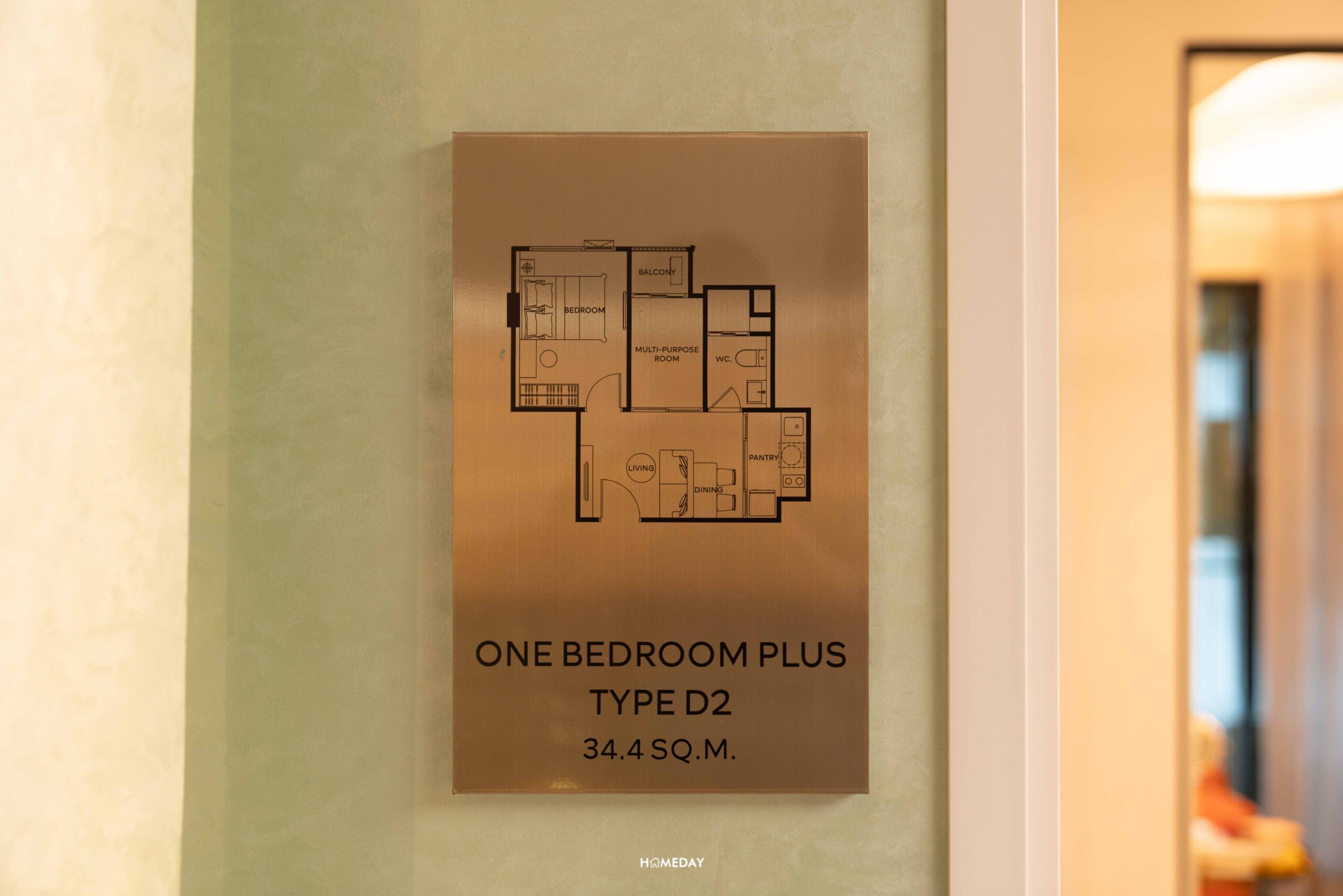 แบบห้อง : One Bedroom Plus • พื้นที่ใช้สอย : 34.40 ตารางเมตร