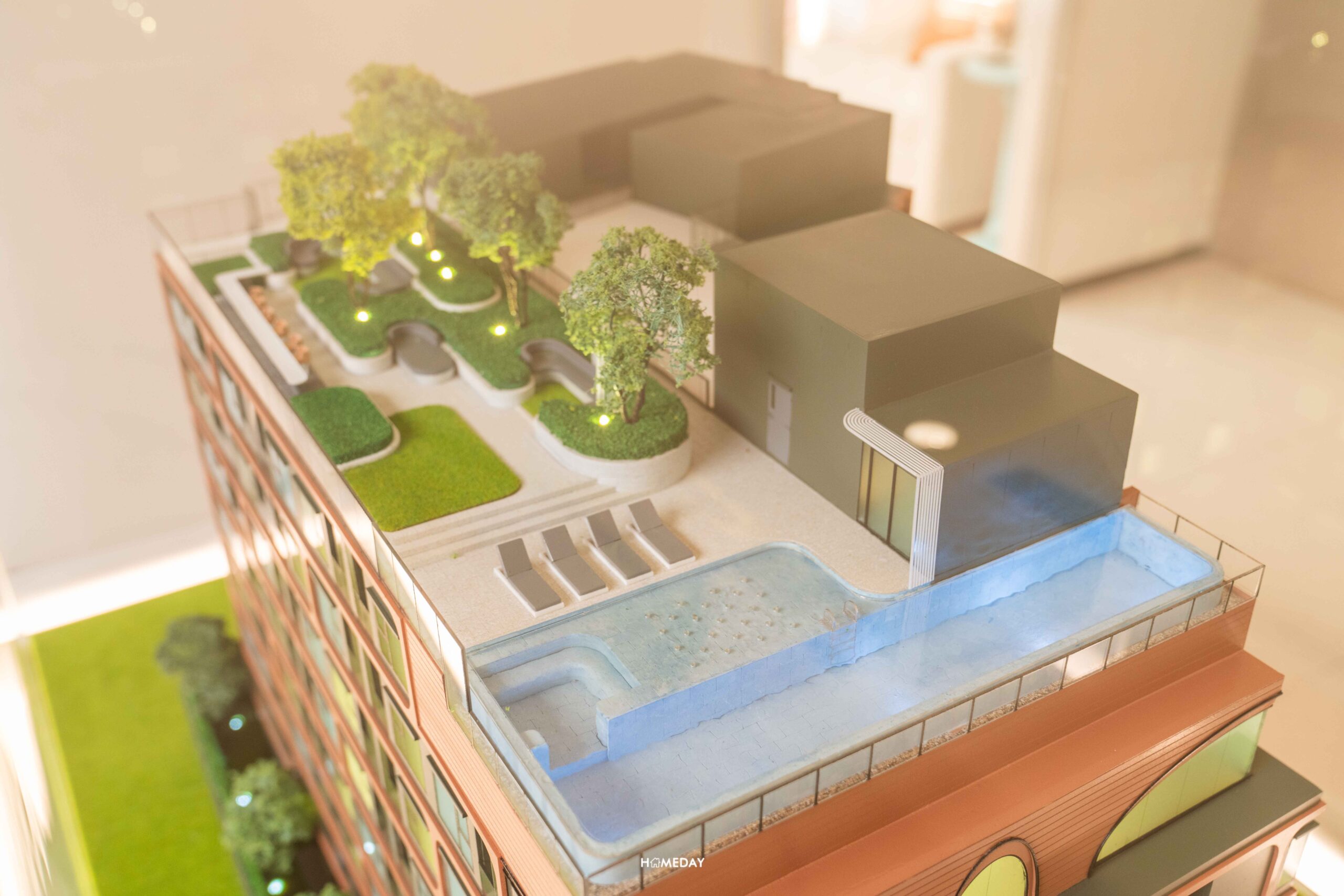 และส่วนกลางชั้นสุดท้าย คือ Rooftop ที่จะประกอบไปด้วย Rooftop Garden หรือสวนลอยฟ้าที่จัด Landscape มาได้อย่างสวยงาม มีการเล่นระดับของสวนหย่อม และมี Party Area ไว้สำหรับนั่งเล่นพักผ่อน ชมวิวเมืองรัชดาฯ ได้รอบด้าน ติดกันจะเป็น Sky Lap Pool สระว่ายน้ำแบบ Infinity Edge Pool พร้อมน้ำพุและหลุมที่นั่งแบบ Jacuzzi ให้คุณได้ดื่มด่ำกับการพักผ่อนในบรรยากาศของการใช้ชีวิตที่อิสระติดเมืองได้อย่างเต็มที่