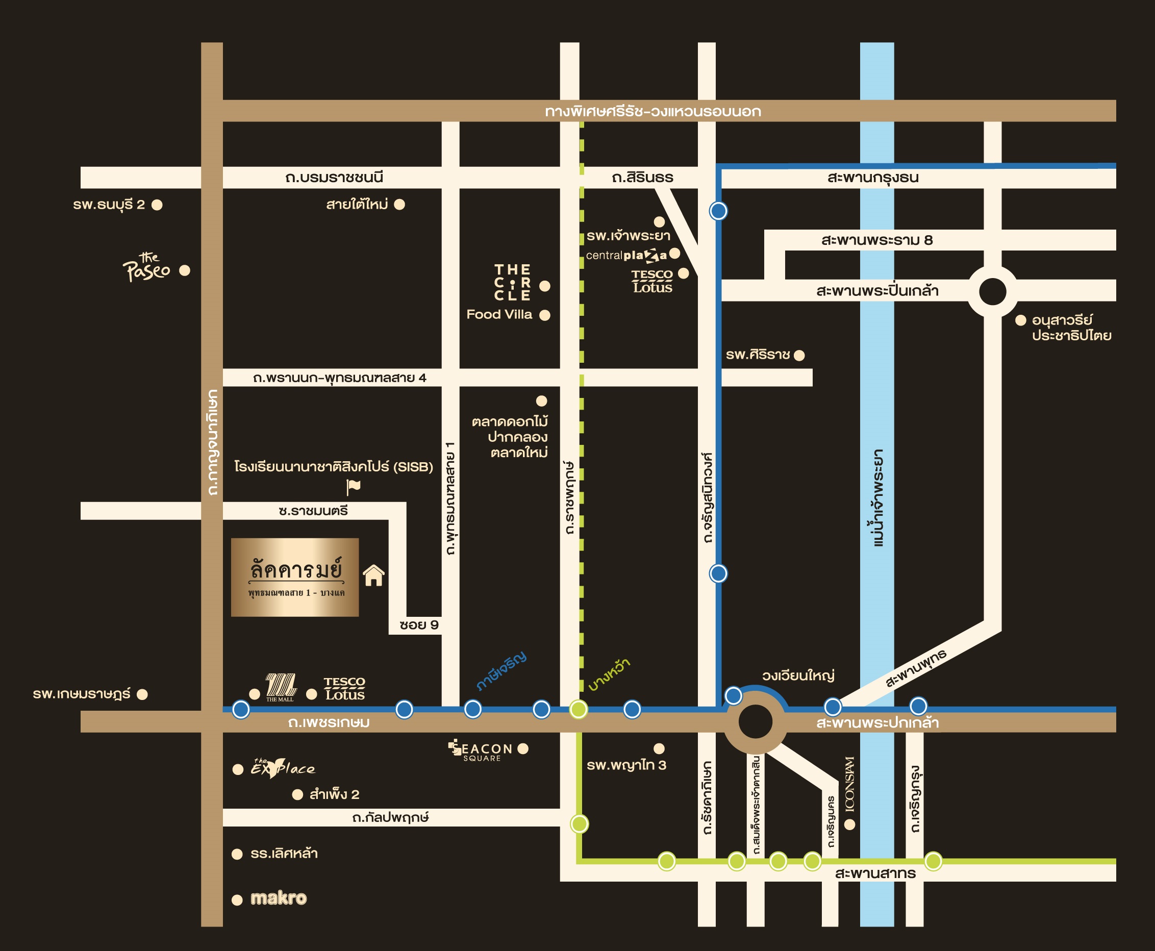 สถานศึกษารร.นานาชาติ SISB Thonburiอนุบาลนานาชาติเคนซิงตัน ห้างสรรพสินค้าSeacon บางแคThe Mall บางแคThe Circle ราชพฤกษ์The Crystal SB ราชพฤกษ์The Walk ราชพฤกษ์Food VillaCentral ปิ่นเกล้าIconsiam