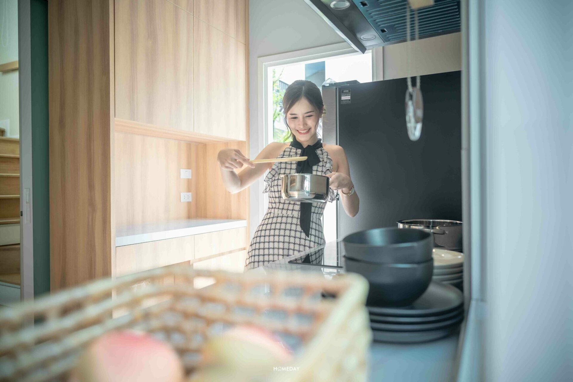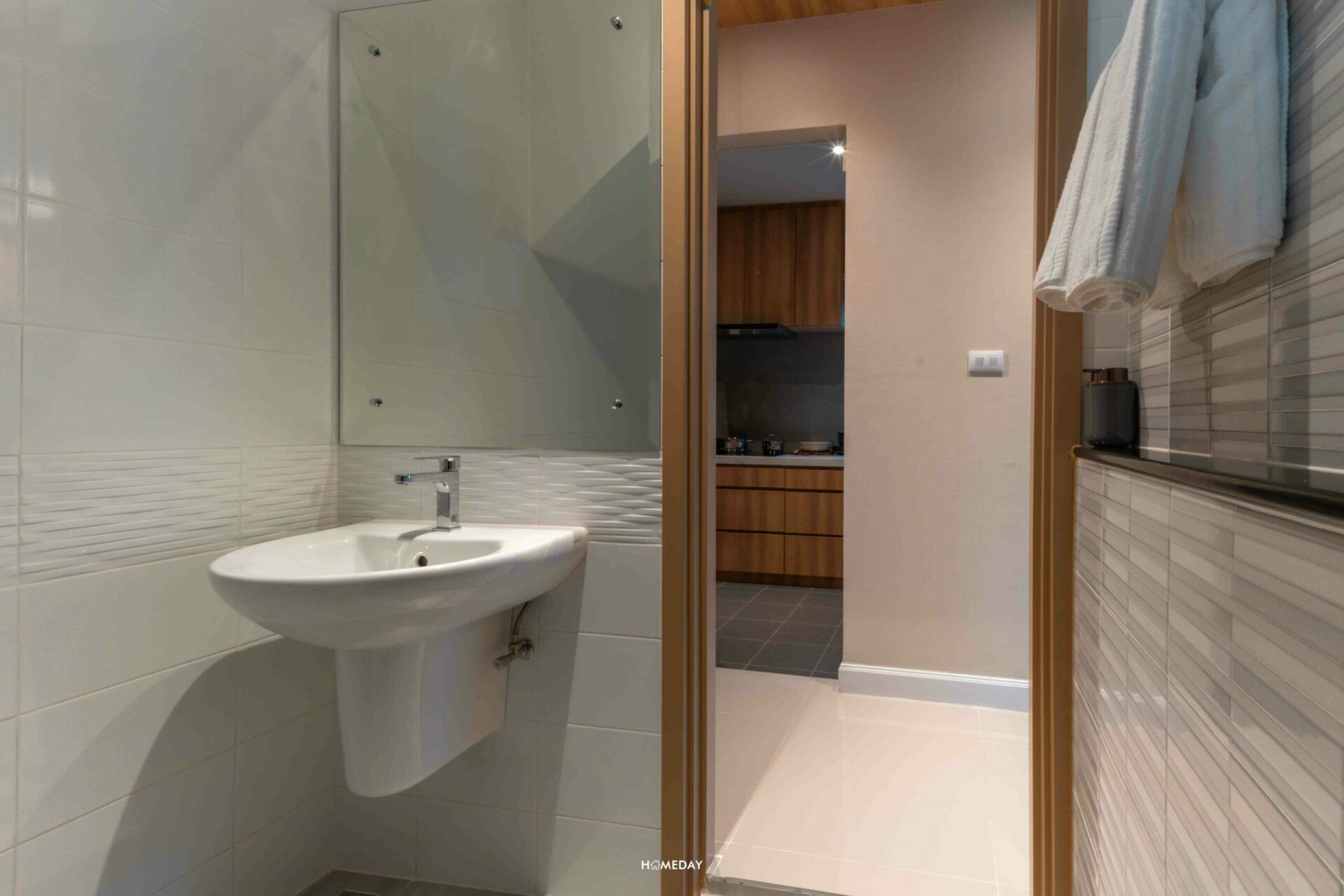 ด้านในก็ยังมีประตูเชื่อมส่วนของพื้นที่ซักล้างอีกด้วย ซึ่งบริเวณนี้ก็สามารถ Drop ช่องสำหรับใส่ตู้เย็น และที่ฝั่งตรงข้ามก็สามารถบิลต์อินตู้เก็บของได้อีกด้วย