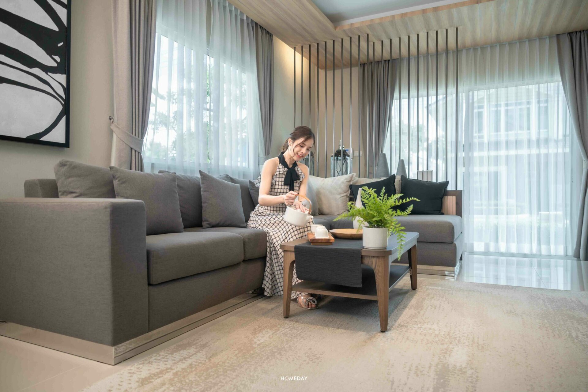 นอกจากนี้ขนาดสำหรับโซฟาก็ยังสามารถเลือกวางแบบ 5-6 ที่นั่งได้สบาย ๆ มีพื้นที่สำหรับเดินเข้า-ออกได้แบบไม่สะดุด ไม่รู้สึกอึดอัดอย่างแน่นอน