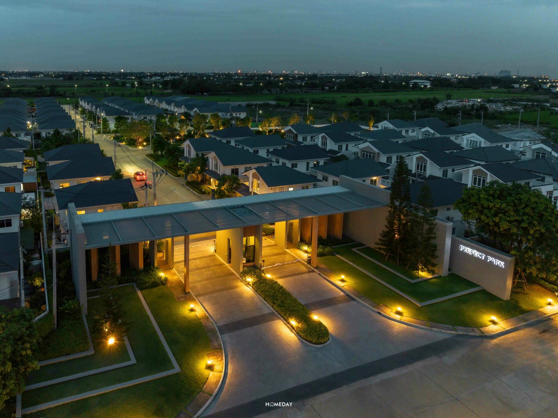 เมื่อขับรถเข้ามาภายในตัวโครงการ จะเจอกับเลนถนนกว้าง ที่นำไปสู่วงเวียนต้นไม้ขนาดใหญ่ด้านหน้า ซึ่งจะแบ่งแยกโซนของที่อยู่อาศัยภายในโครงการ โดยทางซ้ายมือจะเป็นที่ตั้งของโครงการ Perfect Park ส่วนทางขวามือจะเป็นที่ตั้งของโครงการ Perfect Place (โครงการในอนาคต) นั่นเองค่ะ