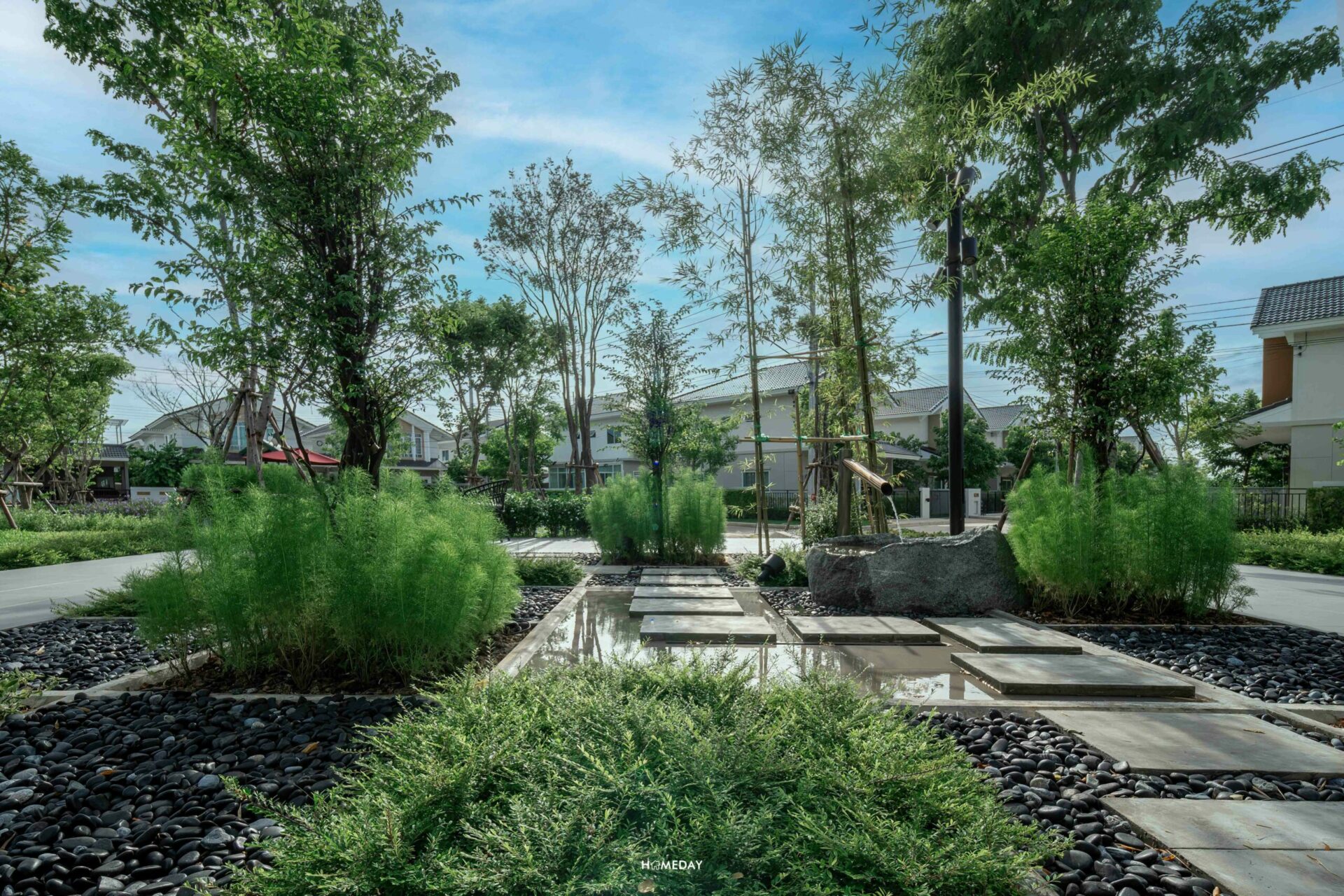 สวนส่วนกลางที่ออกแบบโดยดีไซน์เนอร์ชาวญี่ปุ่นพื้นที่แต่ละจุดภายในสวนเชื่อมต่อถึงกัน ภายใต้ร่มเงาของต้นไม้