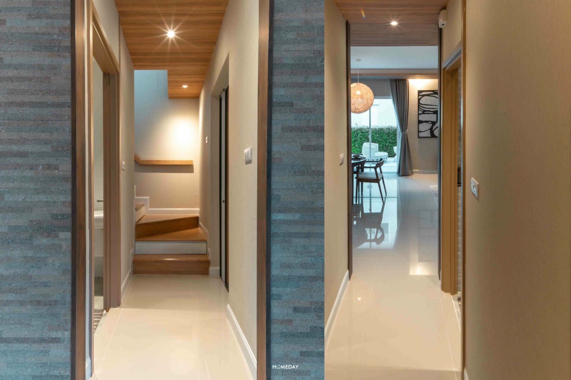 ซ้ายมือจาก Dining Area จะเป็นโถงทางเดินที่เชื่อมไปยังห้องน้ำ, ห้องครัว และบันไดทางขึ้นชั้น 2