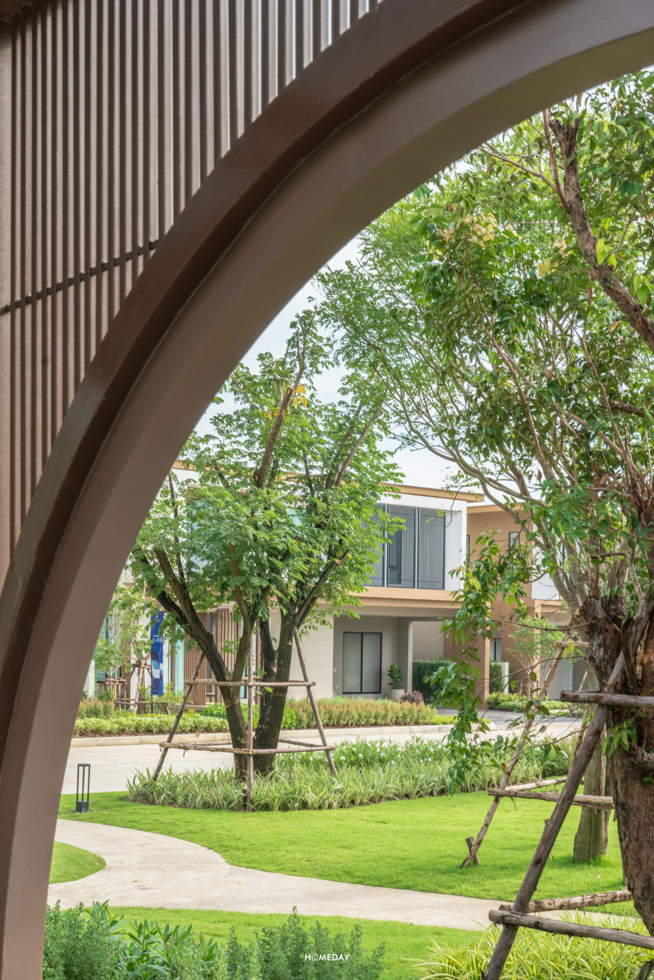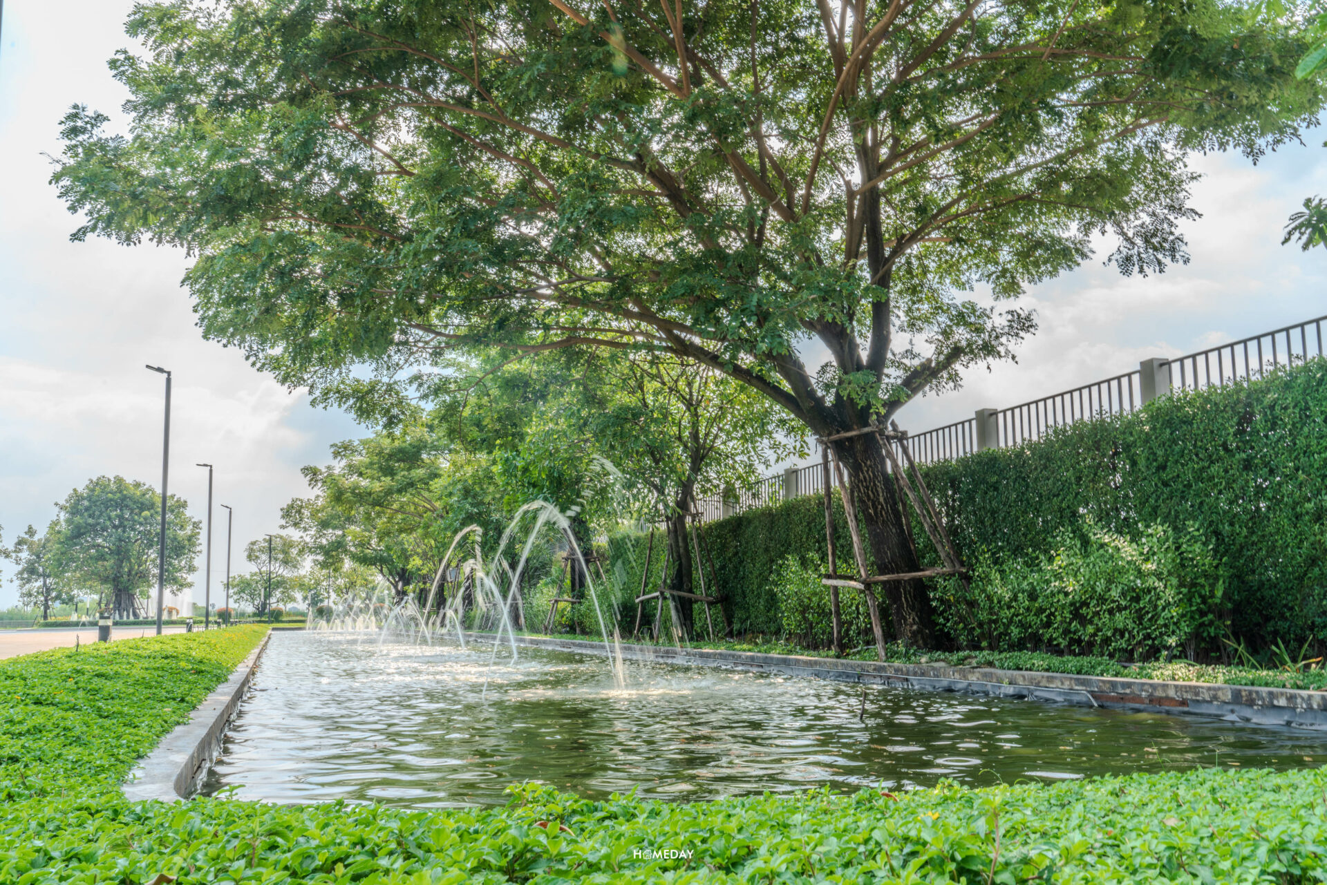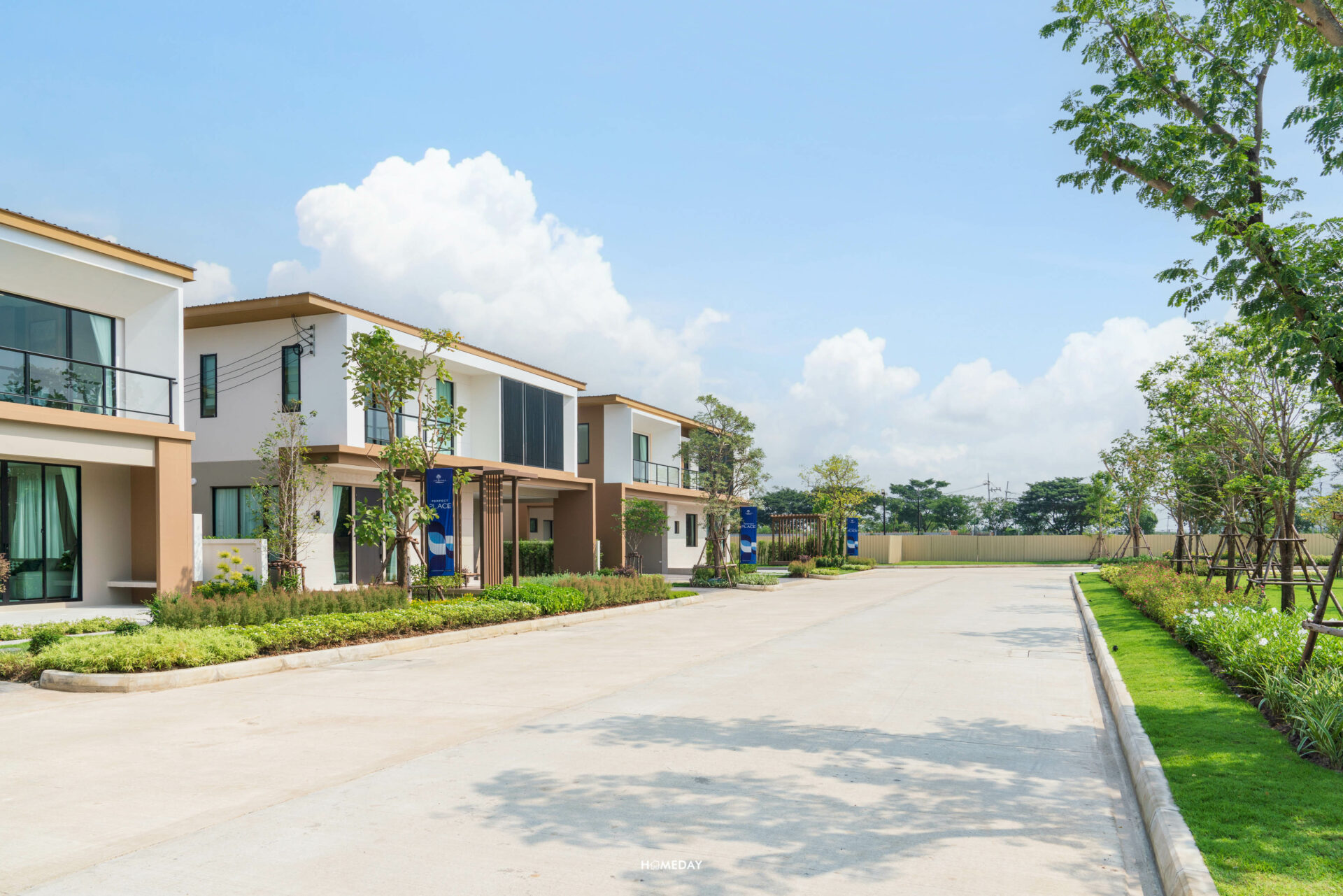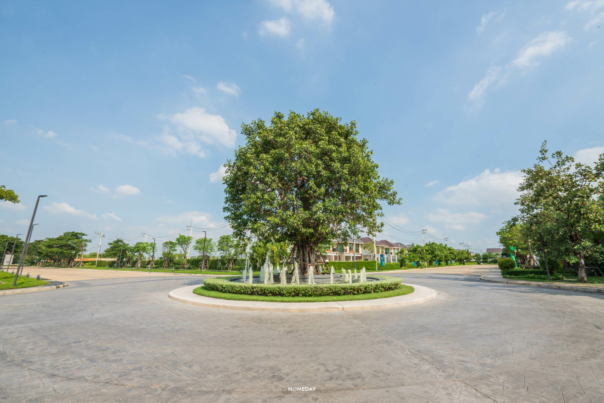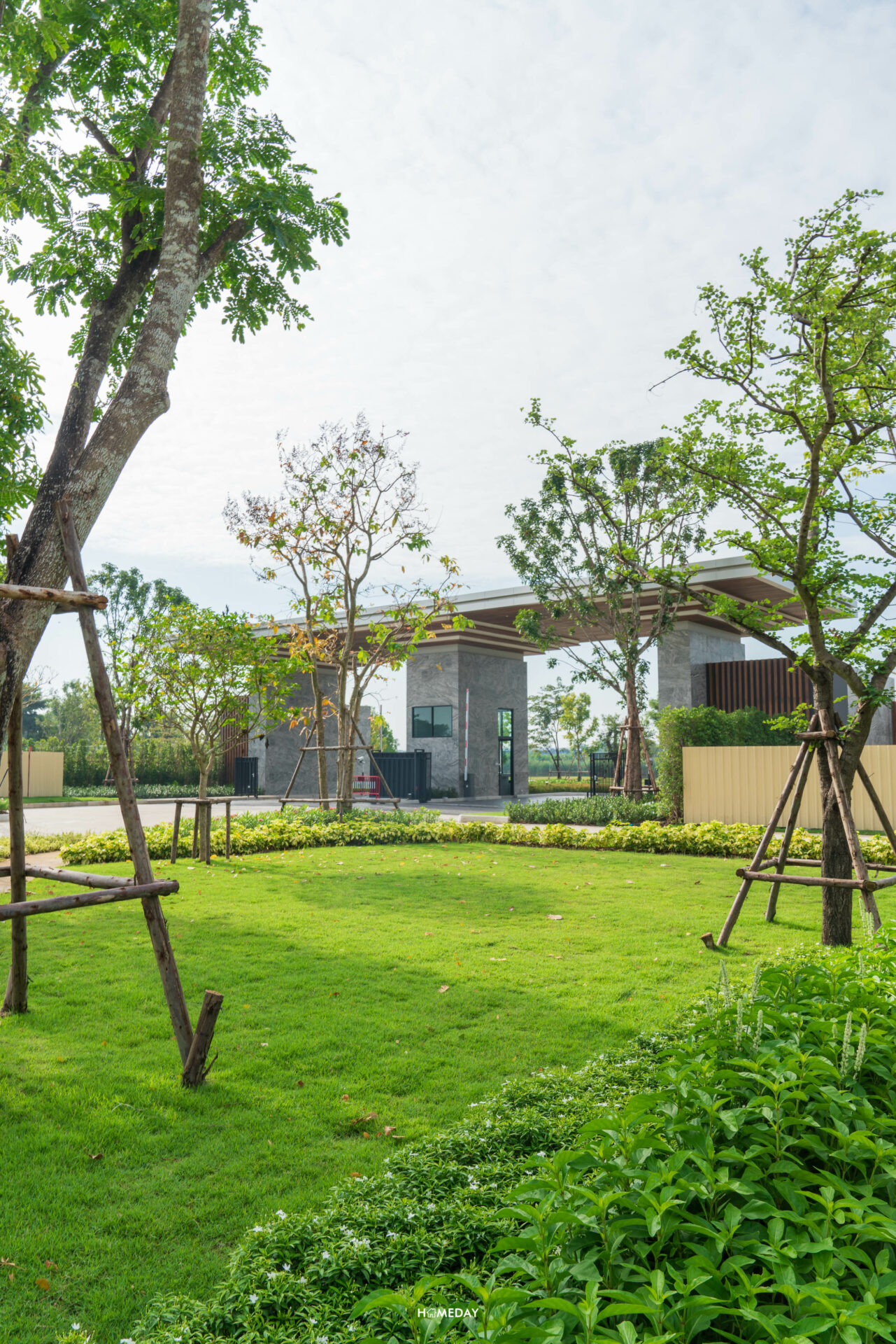 จาก Main Gate เข้ามาด้านในก็จะเจอกับถนนเมนขนาดใหญ่ผ่านซุ้มต้นไม้ร่มรื่นสองข้างทางที่ตรงยาวเข้าไป สุดทางจะเจอกับวงเวียนต้นไม้และทะเลสาบ ซึ่งเป็นส่วนกลางที่ทั้ง 2 โครงการจะได้ใช้ร่วมกันครับ ภายในโครงการจะเห็นได้เลยว่ามีการปลูกต้นไม้เขียวขจีนานาพรรณ ไว้อย่าง ร่มรื่น บรรยากาศดี ตั้งแต่เลี้ยวรถเข้ามาเลยล่ะครับ