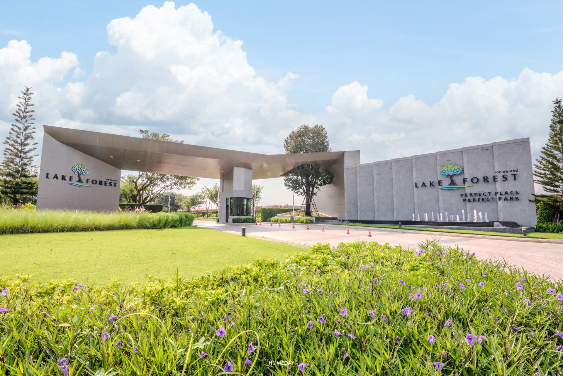 ทางเข้า Main Gate ของโครงการ Lake Forest จะเป็นซุ้มทางเข้าซุ้มแรก ก่อนที่จะเข้าไปแบ่งย่อย Gate ของแต่ละโครงการอีกทีหนึ่ง ซึ่งภายในก็จะประกอบไปด้วยโครงการ Perfect Park และ Perfect Place โดยโครงการ Perfect Place เป็นที่ที่เราจะมารีวิวกันในวันนี้ครับ เป็นโครงการเปิดตัวล่าสุดภายใต้อาณาจักร Lake Forest นั่นเอง