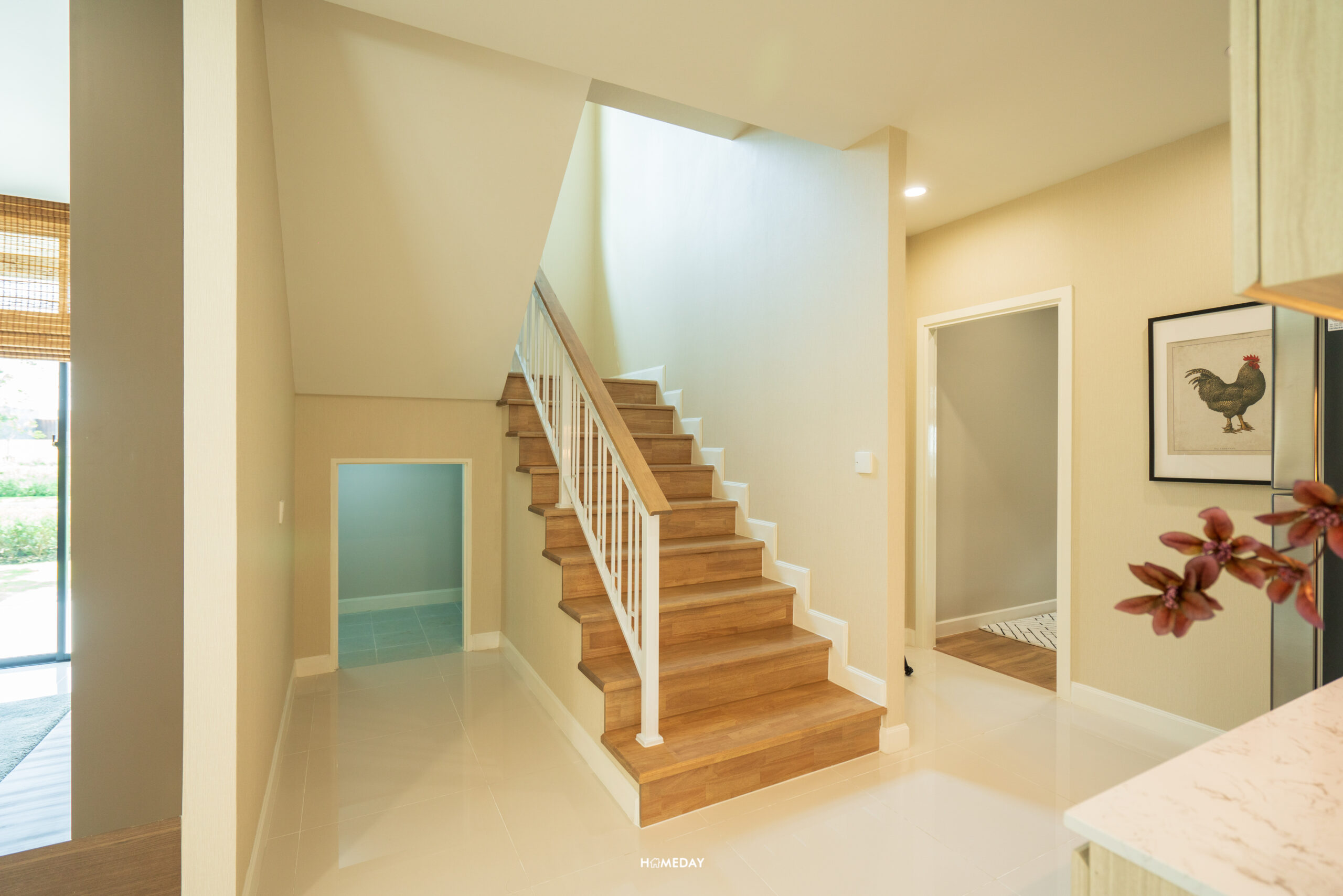 ถัดเข้าไปซ้ายมือจากพื้นที่ Dining จะเป็นโถงทางเดินขนาดใหญ่ เชื่อมต่อไปยังพื้นที่ส่วนที่เหลือของชั้น 1 โดยขวามือส่วนแรก ติดกับ Dining จะเป็นบันไดทางขึ้นชั้น 2 อยู่ติดกันกับห้องเก็บของใต้บันไดขนาดใหญ่ครับ
