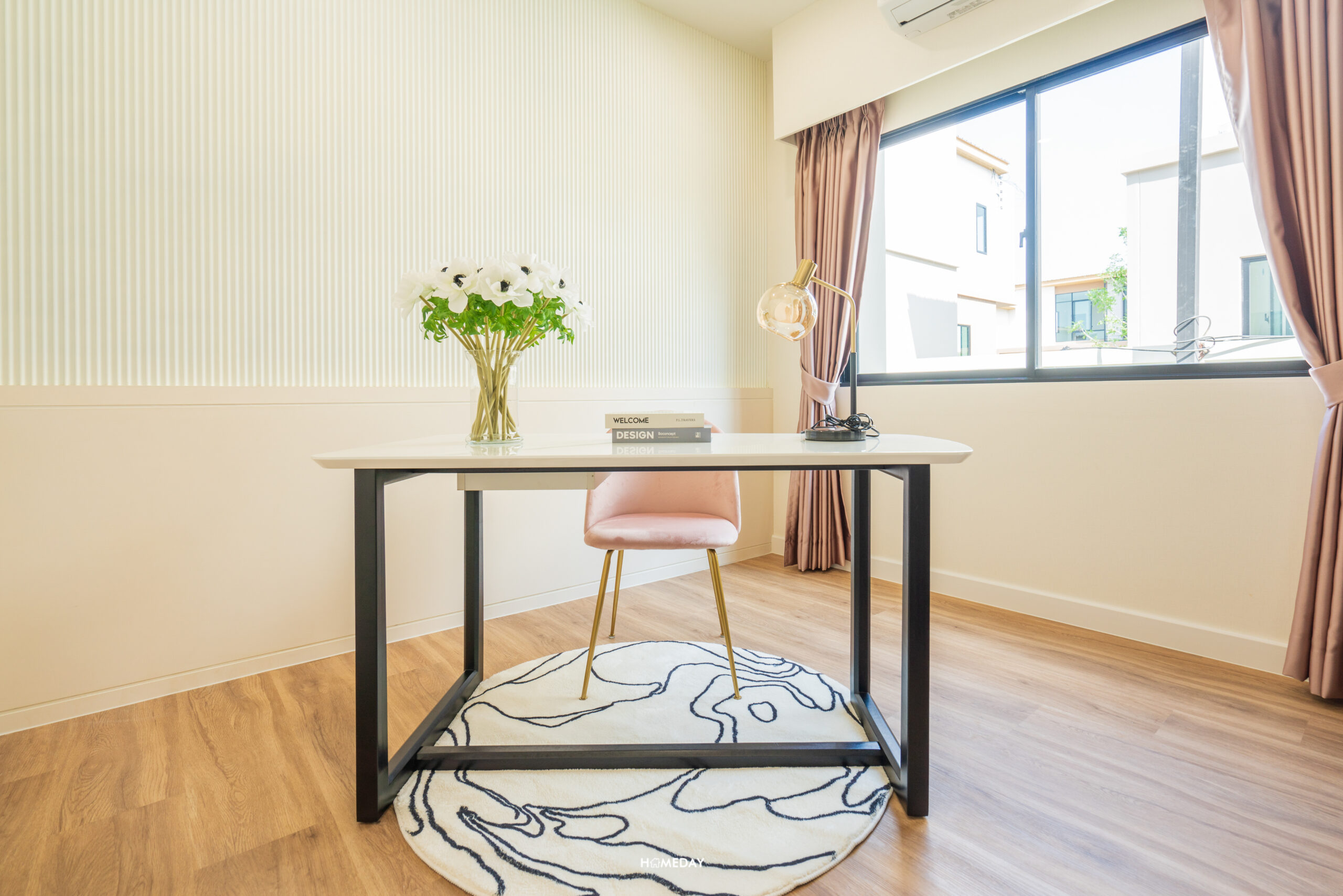 บ้านตัวอย่างปรับการใช้งานของห้องนี้ให้กลายมาเป็นห้องทำงานส่วนตัว ซึ่งลงตัวมาก ๆ ครับ ส่วนใครที่จะใช้งานเป็นห้องนอน ห้องนี้ก็เหมาะลงตัวกับเตียงขนาด 3.5 ฟุต วางแล้วยังเหลือพื้นที่รอบเตียงให้ใส่เฟอร์นิเจอร์พื้นฐานอย่างตู้เสื้อผ้า, โต๊ะเครื่องแป้ง, โต๊ะข้างเตียง และโต๊ะทำงานได้สบาย ๆ
