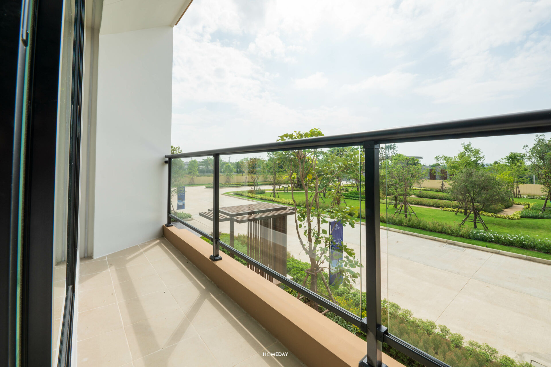 ระเบียงห้องกว้าง เปิดรับวิวสวนสวย ๆ ภายในโครงการได้ทุกวัน พื้นที่สามารถใช้งานได้จริง วางมุมนั่งเล่นพักผ่อนเล็ก ๆ หรือจะปลูกต้นไม้เพิ่มพื้นที่สีเขียวให้กับบ้านก็ได้ครับ