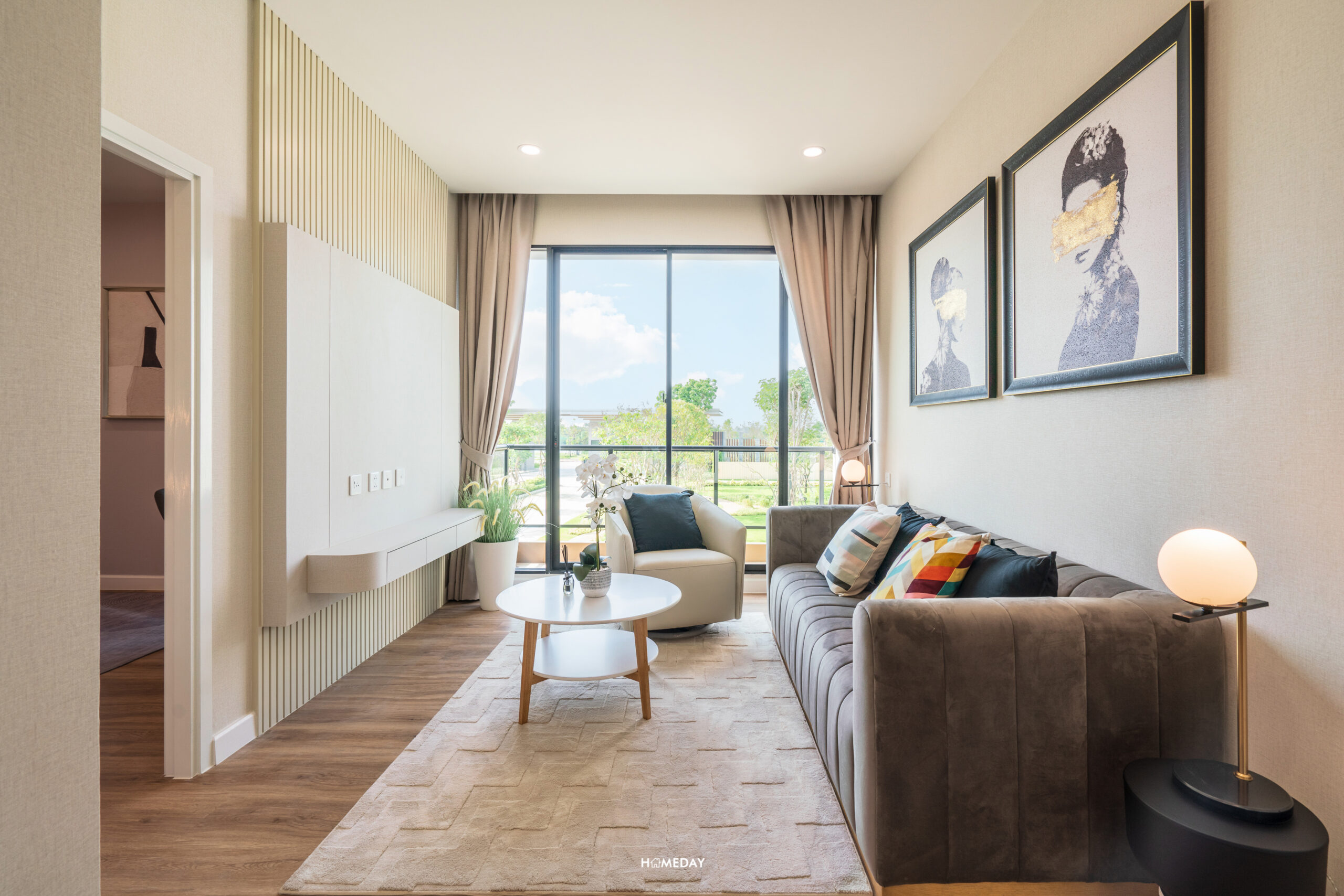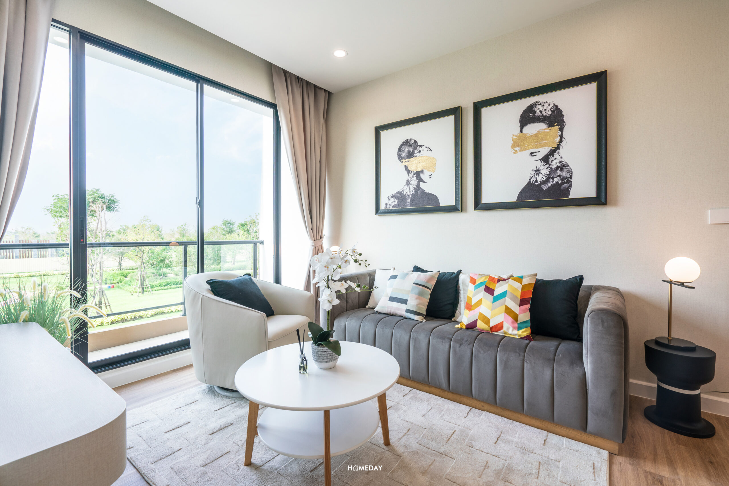 ขนาดพื้นที่ถือว่าใหญ่เลยครับ ใส่ชุดโซฟา 3-5 ที่นั่งได้เลย สามารถแขวนทีวีได้ โดยเหลือพื้นที่กึ่งกลางให้วางโต๊ะกลางได้ด้วย จะดูหนัง ฟังเพลง เล่นเกม จัดเต็มเอ็นเตอร์เทนเมนต์ ใช้เวลาคุณภาพกับครอบครัวได้มากยิ่งขึ้น มีระเบียงส่วนตัว ให้เปิดรับลมชมวิวได้ชิล ๆ อีกด้วยครับ