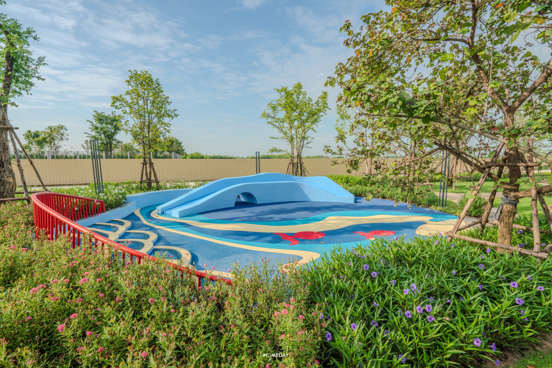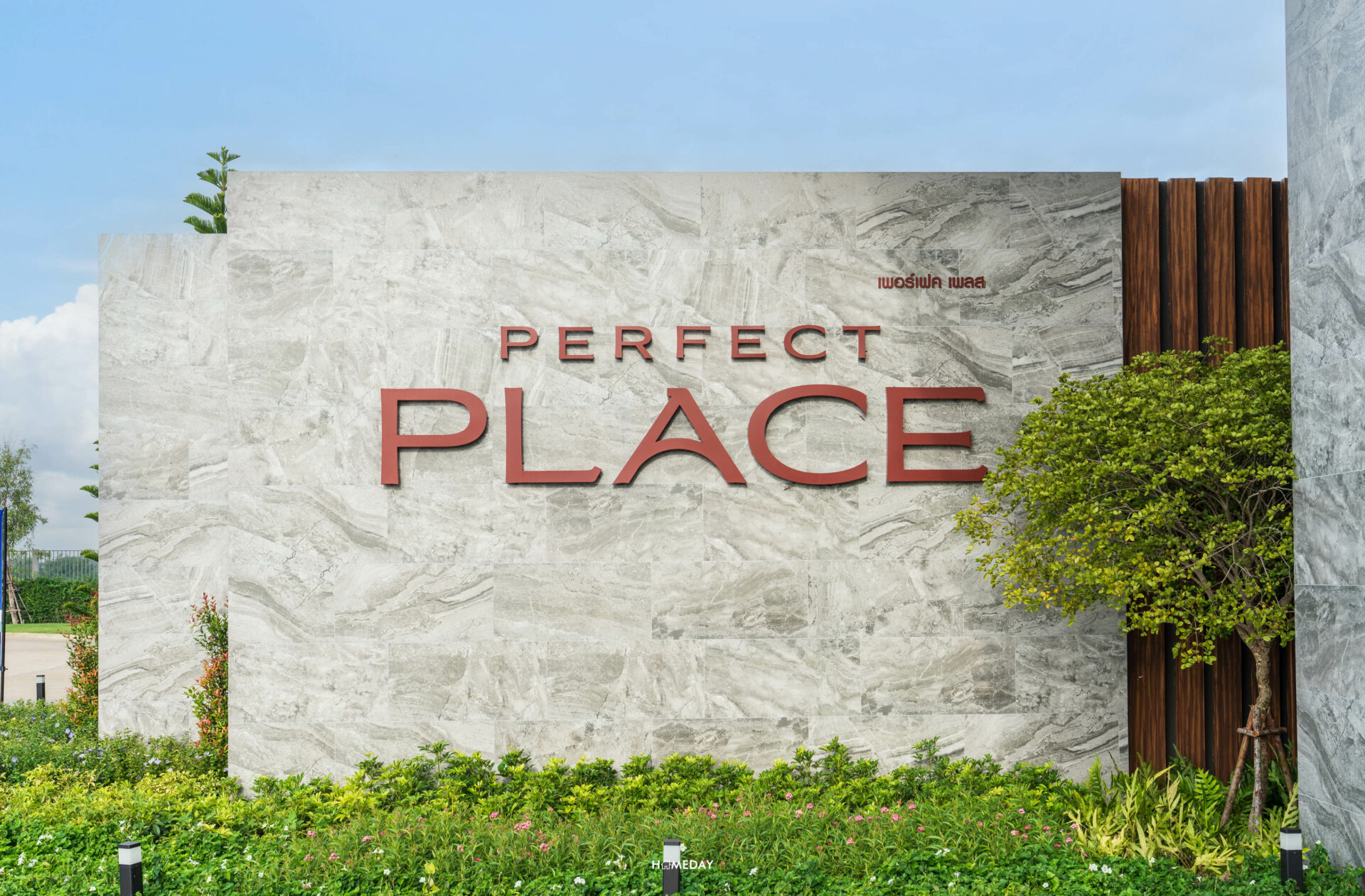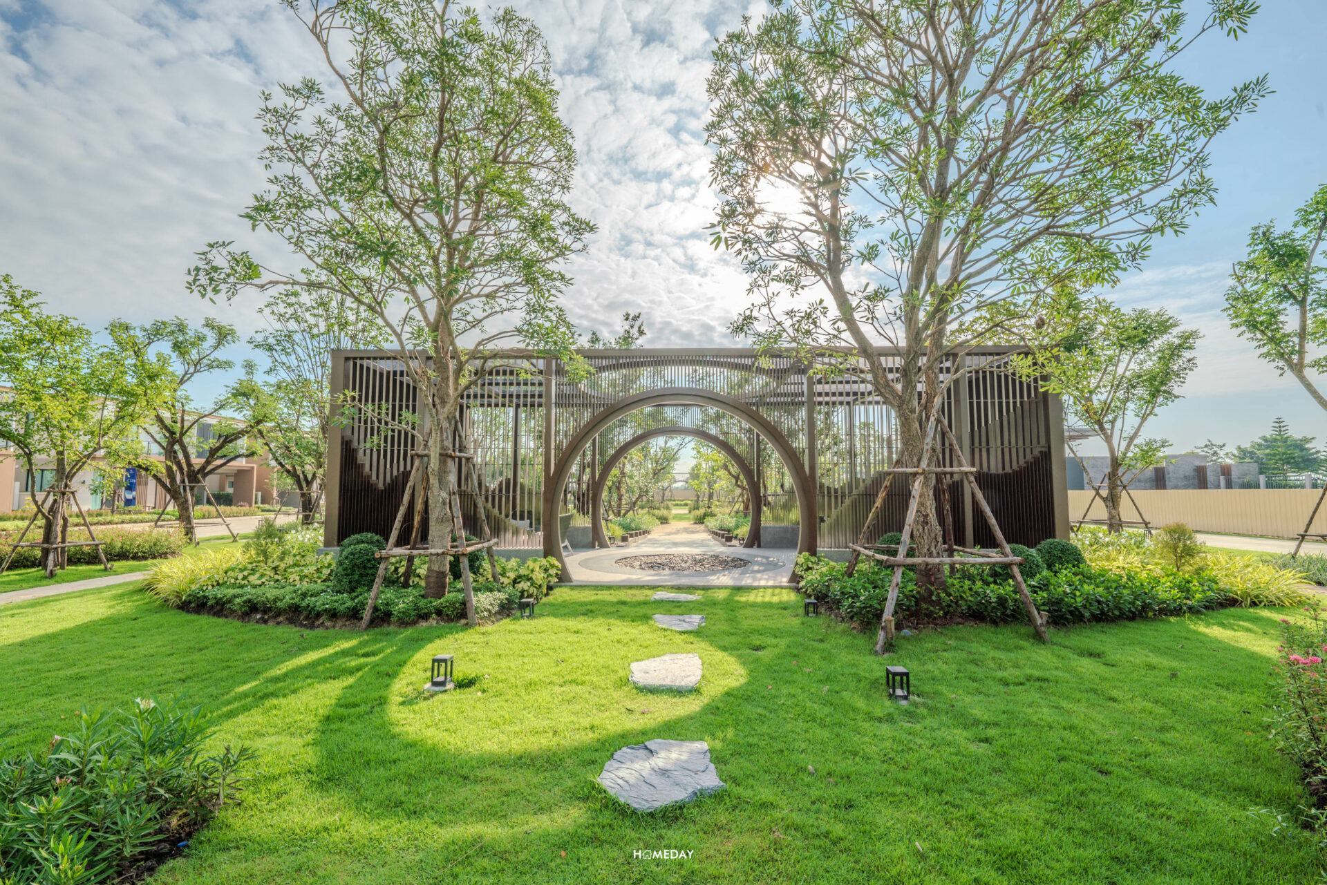 มาดูต่อกันที่ส่วนกลางภายในโครงการ Perfect Place กันบ้างครับ พื้นที่จะตั้งอยู่ติดกับ Gate ทางเข้าของทางโครงการ ขับรถเข้ามาสวนจะตั้งอยู่ทางด้านซ้ายมือของเราครับ ตัวสวนจัดตกแต่งประดับพันธุ์ไม้ออกมาได้อย่างสวยงาม ประกอบไปด้วย Walkway, Pavilion สําหรับการพักผ่อนท่ามกลางธรรมชาติ และสนามเด็กเล่นครับ