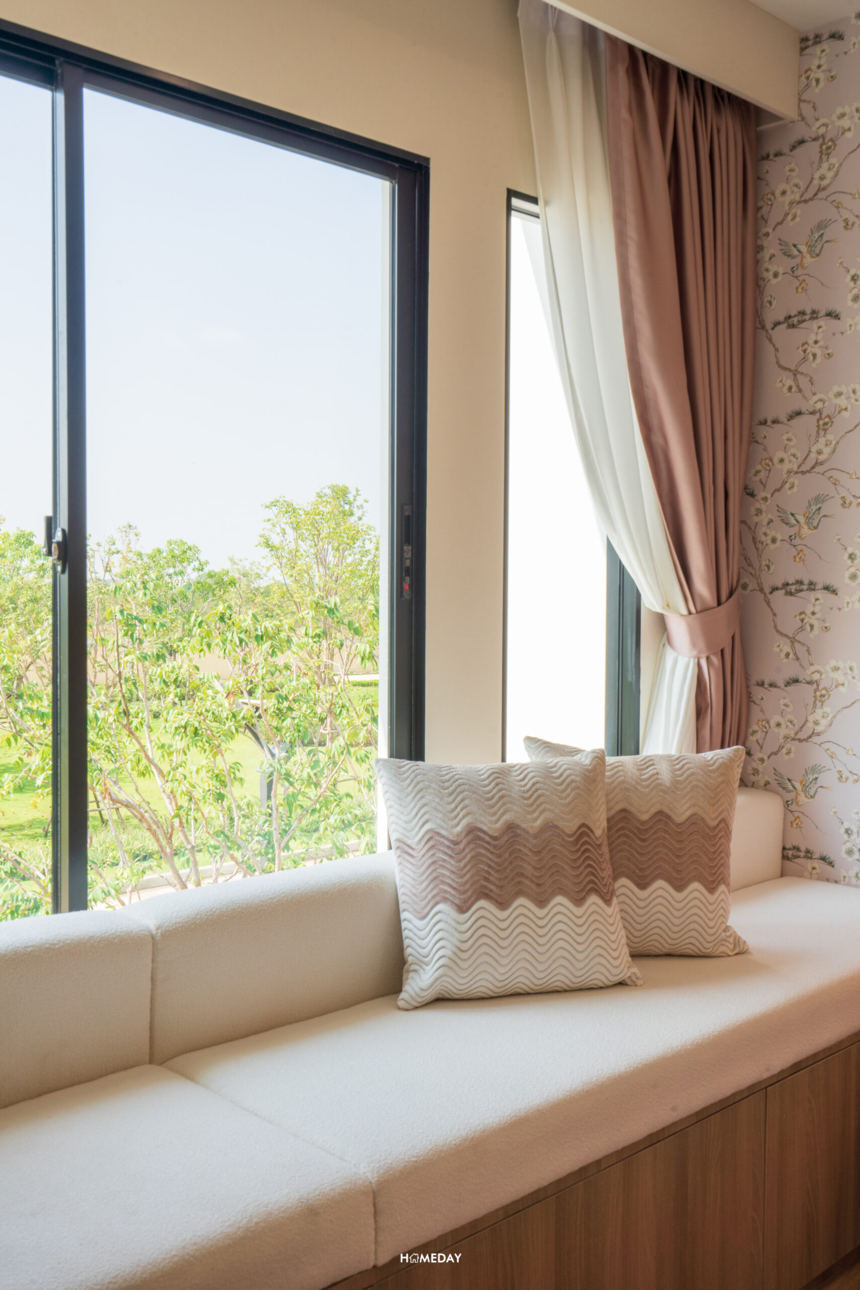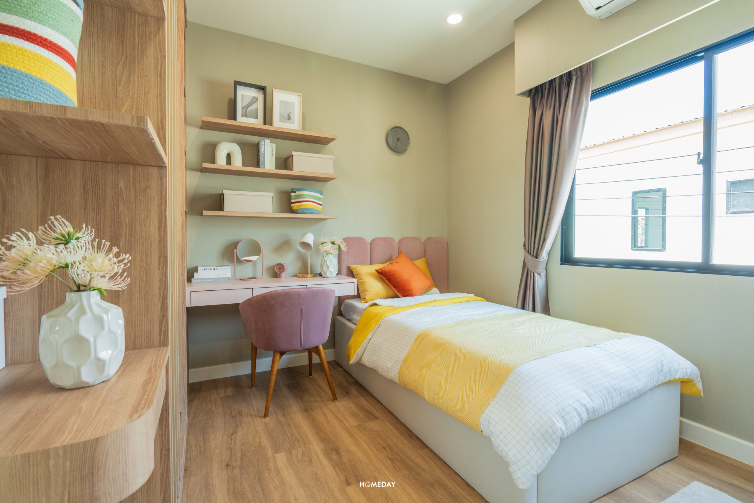ปิดท้ายกันที่ Bedroom 2 ห้องขวามือจากบันไดทางขึ้น ห้องนี้ก็เป็นอีกหนึ่งห้องที่ได้มุมฝั่งหน้าบ้านเช่นเดียวกับ Master Bedroom ครับ เปิดเข้ามาถึง จุดเด่นจะเป็นบานกระจกขนาดใหญ่เกือบเต็มความสูงของห้อง รับแสงและวิวได้แบบจัดเต็ม