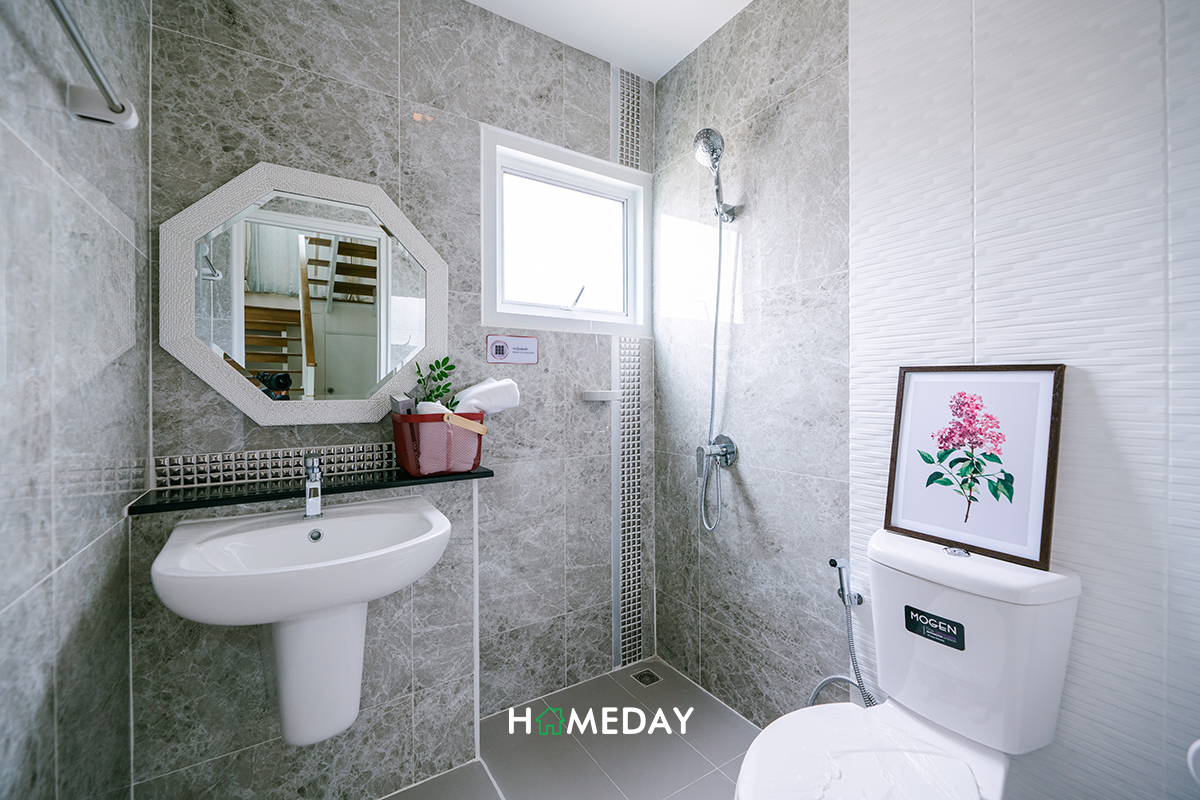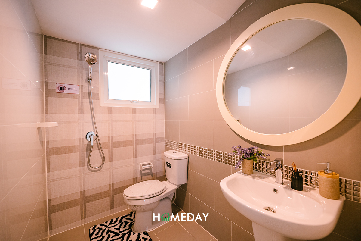 ส่วนห้องน้ำของชั้น 2 นี้ ก็ได้ฟังก์ชันและชุดสุขภัณฑ์ทุกชิ้นเหมือนกันกับห้องน้ำชั้นล่างเลยค่ะ