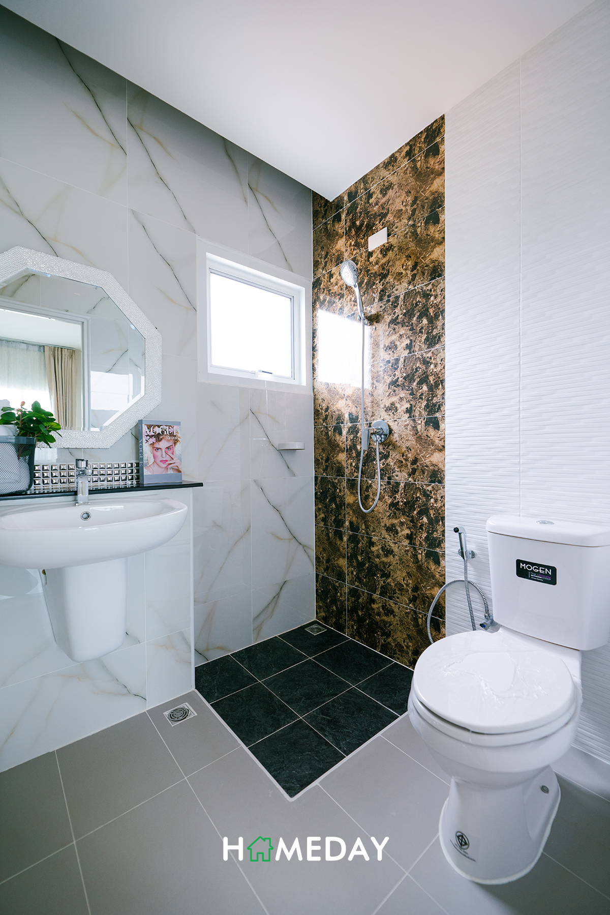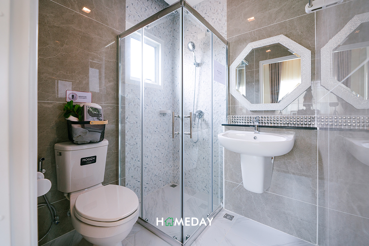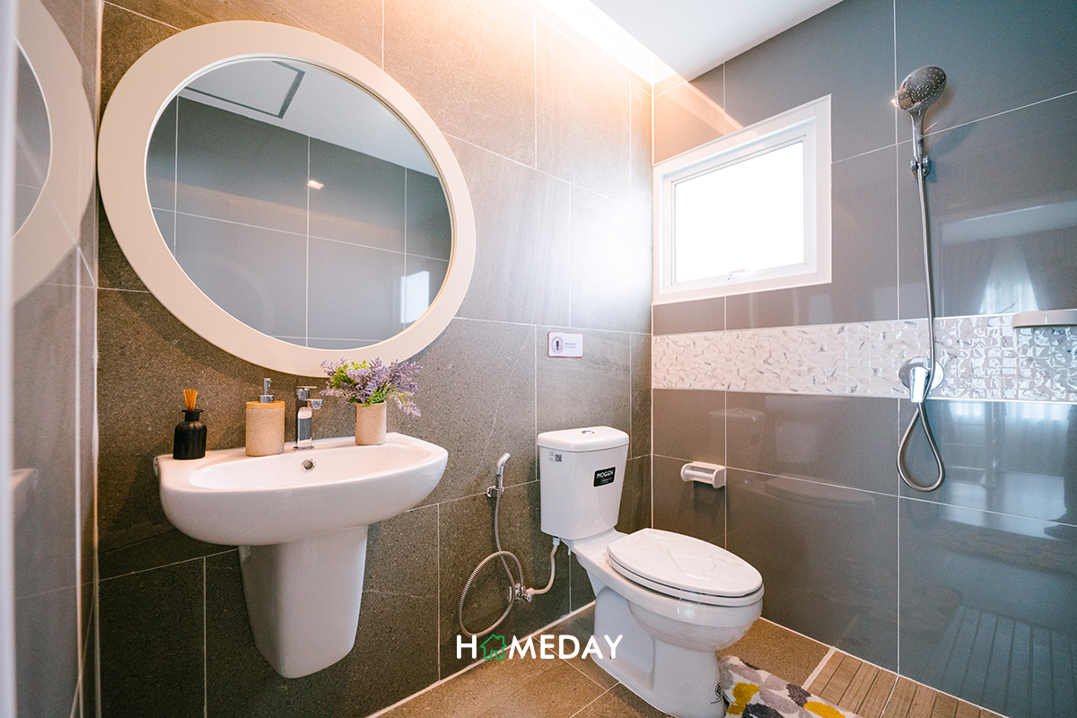 ห้องน้ำภายในตัวของ Master Bedroom ได้ชุดสุขภัณฑ์พื้นฐานและ Accessory ภายในทุกอย่างเหมือนกันกับห้องน้ำชั้นล่างเลยค่ะ แต่จะได้พิเศษเพิ่มเติมมาในส่วนของ Partition กั้นส่วนเปียก-แห้ง ซึ่งก็จะทำให้เราสามารถใช้งานห้องน้ำได้อย่างเป็นระเบียบและดูแลรักษาความสะอาดได้ง่ายขึ้นค่ะ