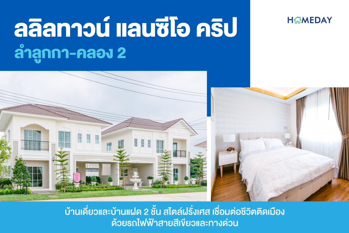 โครงการลลิลทาวน์ แลนซีโอ คริป ลำลูกกา-คลอง 2 บ้านเดี่ยวและบ้านแฝด 2 ชั้น ทำเลชานเมืองที่ใกล้แหล่งไลฟ์สไตล์ชั้นนำพร้อมสรรพ ถูกดีไซน์ให้สอดรับกับ Lifestyle สังคมเมือง ออกแบบความสุขไปพร้อมกับสิ่งที่คุณรักได้อย่างไม่จำกัด การก่อสร้างใส่ใจมากกว่าในทุกคุณภาพวัสดุอุปกรณ์ตกแต่งภายใน สะท้อนรสนิยมทันสมัย ส่วนกลางก็ดีงามไม่แพ้กัน ได้มาครบครันทั้งคลับเฮาส์, สระว่ายน้ำ ฟิตเนส รองรับได้ทุกไลฟ์สไตล์ อีกทั้งยังมีสวนสวยให้ได้สูดอากาศผ่อนคลายไปกับบรรยากาศอีกด้วย