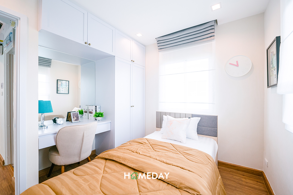Bedroom 2 และ Bedroom 3 ขนาดใกล้เคียงกันเลยค่ะ ภายในสามารถวางเตียง 3.5 ฟุตได้กำลังพอเหมาะพอดี สามารถวางตู้เสื้อผ้าและโต๊ะเครื่องแป้งหรือโต๊ะอ่านหนังสือภายในได้เลยค่ะ ด้านในได้บานกระจกมา 1 บาน เปิดรับแสงให้ห้องสว่าง ดูโปร่งโล่งได้เป็นอย่างดีทีเดียว