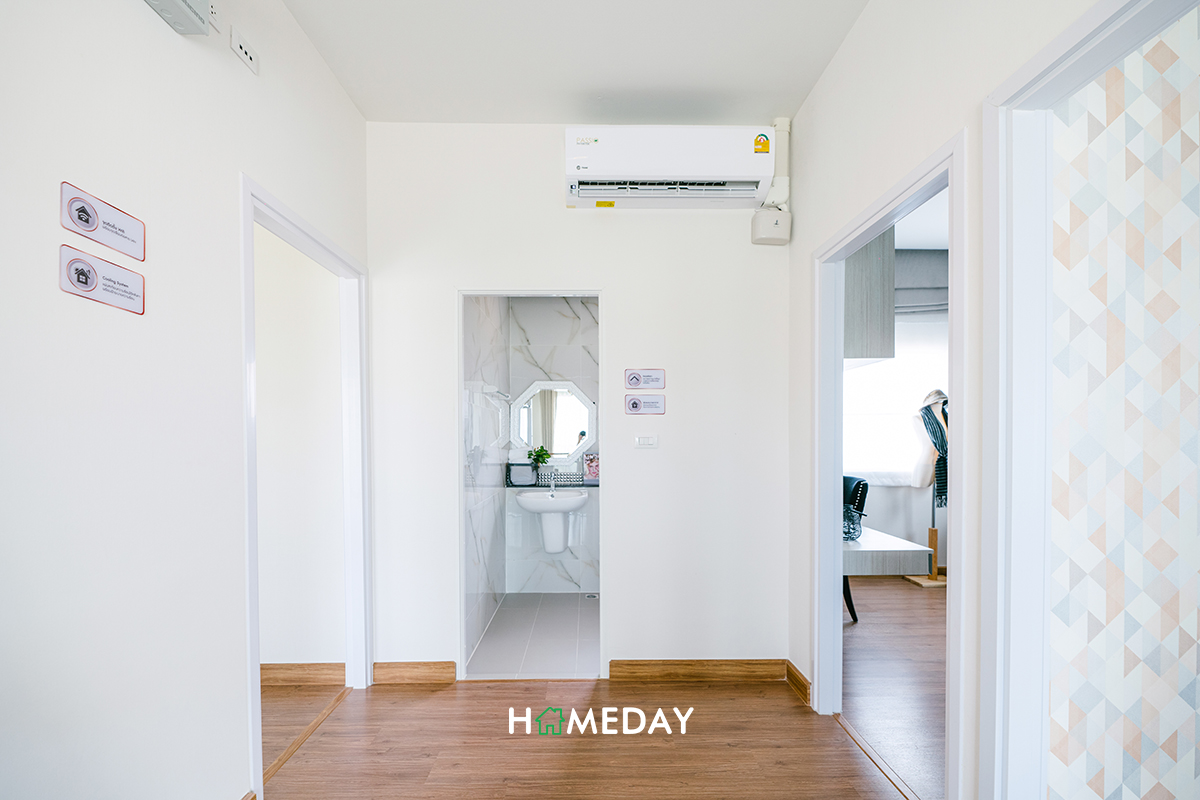 จากชั้น 1 เดินขึ้นมาสำรวจที่ชั้น 2 กันต่อค่ะ เมื่อเราเดินขึ้นมาถึง ตรงข้ามเราจะเป็นห้องน้ำค่ะ ซ้ายมือเป็น Master Bedroom ส่วนขวามือจะเป็นทางเข้า Bedroom 2 และ Bedroom 3 ตามลำดับค่ะ