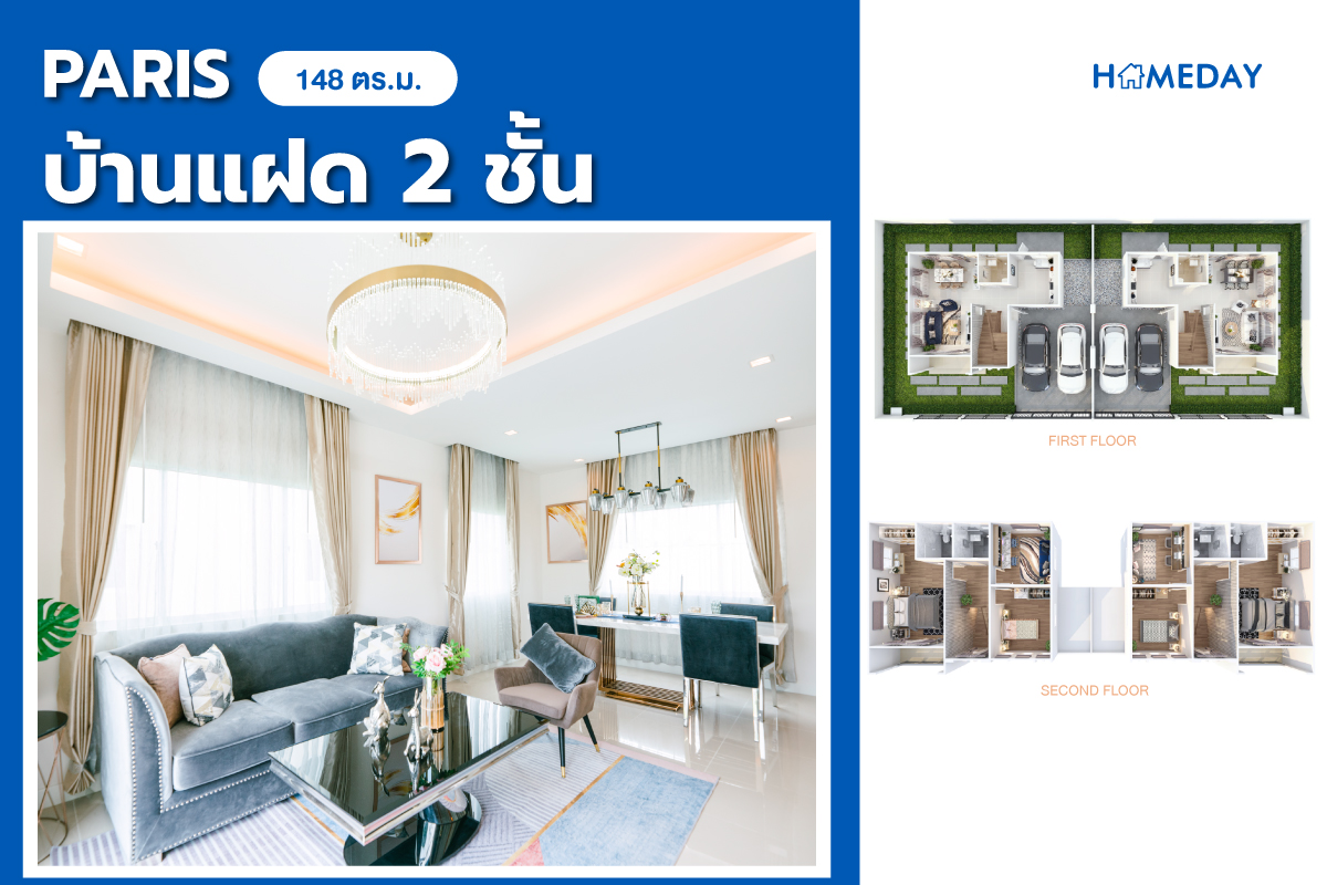 • บ้านเดี่ยวและบ้านแฝด 2 ชั้น สไตล์ฝรั่งเศส ตอบรับทุก New Normal Lifestyle พื้นที่ใช้สอยสูงสุดถึง 174 ตร.ม. พร้อมที่จอดรถสูงสุด 2 คัน