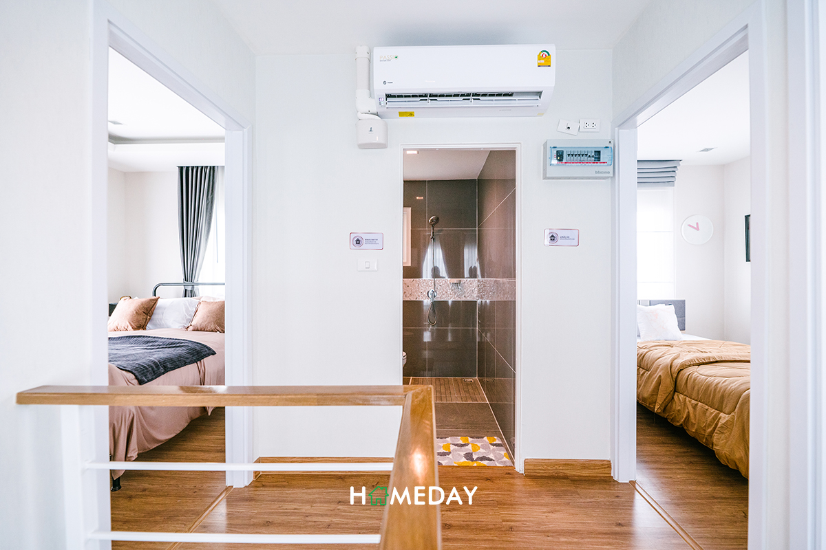 มาดูที่ชั้น 2 กันต่อเลยค่ะ เมื่อเดินขึ้นมา ตรงข้ามเราจะเป็นห้องน้ำค่ะ ซ้ายมือเป็น Master Bedroom ขวามือเป็น Bedroom 2 และ Bedroom 3