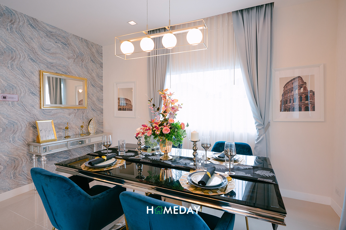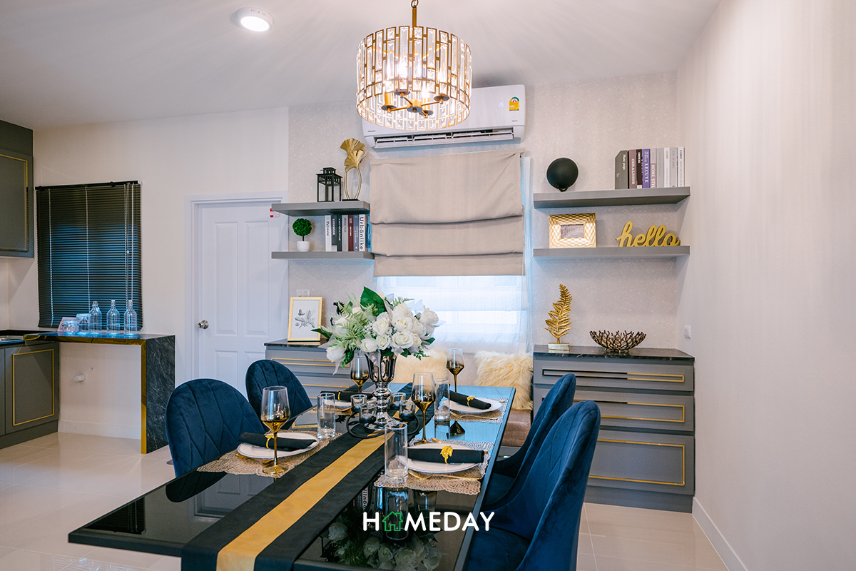 ทางด้านของ Dining Area นั้น รองรับขนาดได้ 4-6 ที่นั่งเช่นเคยค่ะ พื้นที่รอบ ๆ ก็ยังมีให้สามารถวางชั้นและตู้เก็บของเพิ่มการจัดเก็บได้เหลือ ๆ เลยค่ะ