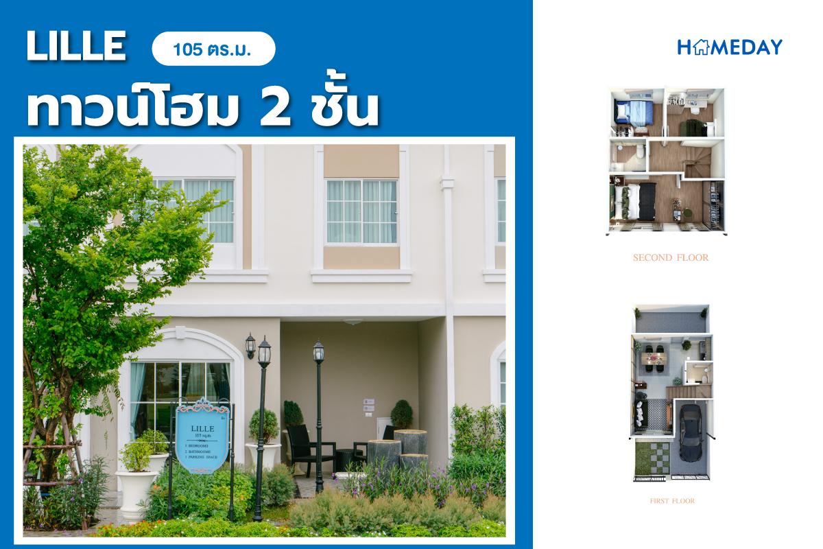 • บ้านทาวน์โฮม 2 ชั้น สไตล์ฝรั่งเศส ตอบรับทุก New Normal Lifestyle พื้นที่ใช้สอยสูงสุดถึง 125 ตร.ม. พร้อมที่จอดรถสูงสุด 2 คัน