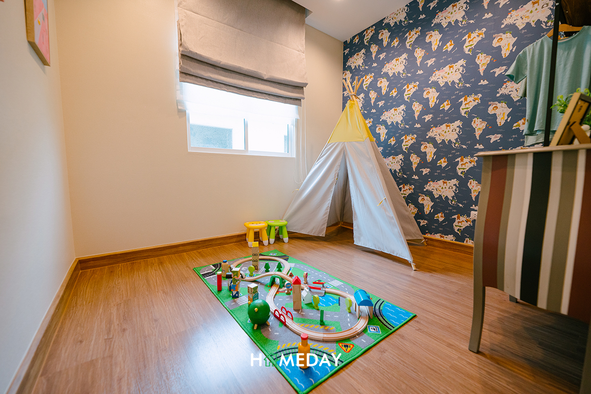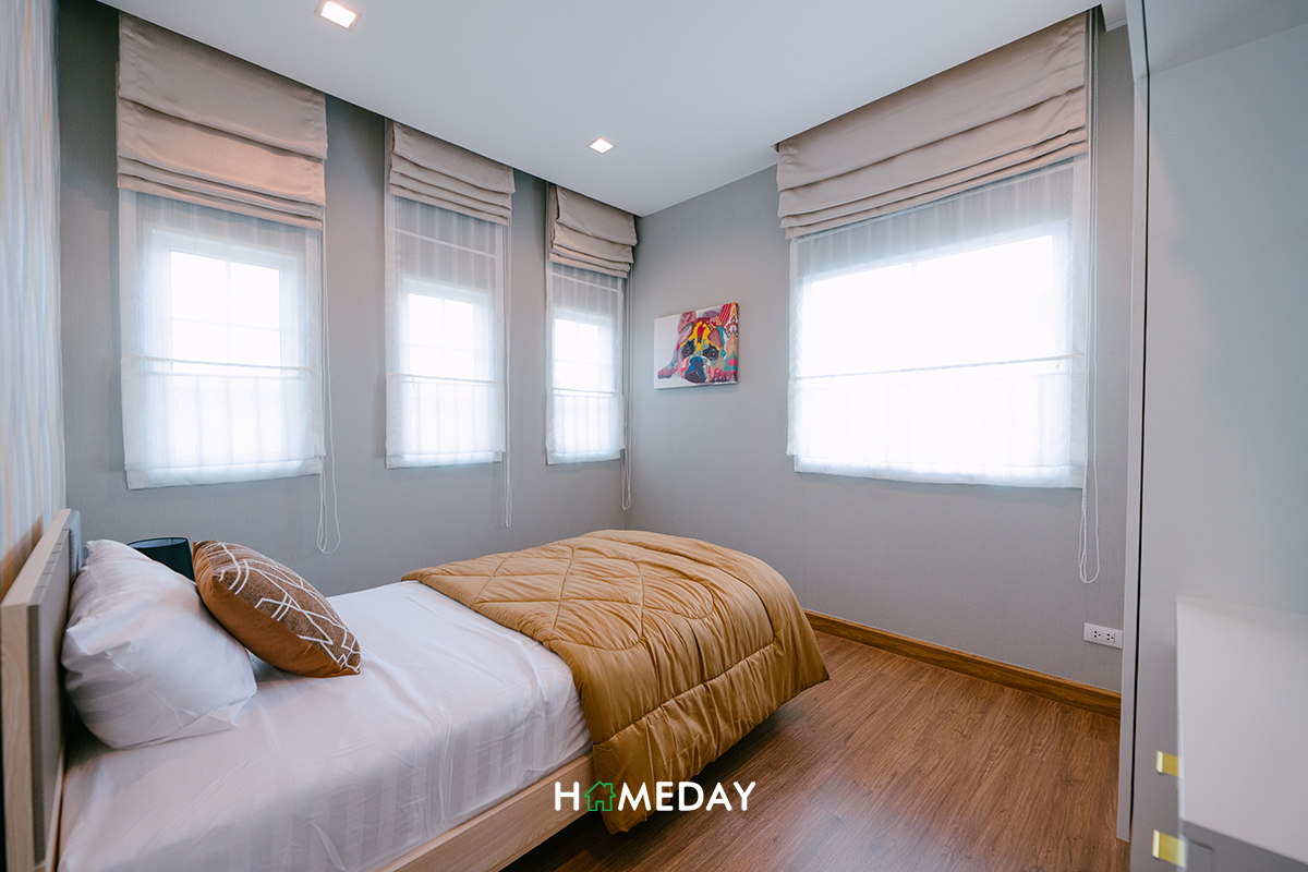 ทางด้านของ Bedroom 2 และ Bedroom 3 นั้น ทั้ง 2 ห้องเรียกได้ว่าขนาดเกือบจะเท่ากันเลยก็ว่าได้ค่ะ ภายในเหมาะจะใช้เป็นห้องสำหรับเด็ก ๆ วางเป็นลักษณะของเตียง 3.5 ฟุต ลงตัวพอดีค่ะ ยังเหลือพื้นที่ให้สามารถวางโต๊ะอ่านหนังสือทำการบ้าน และวางตู้เสื้อผ้าได้อย่างลงตัวเลย