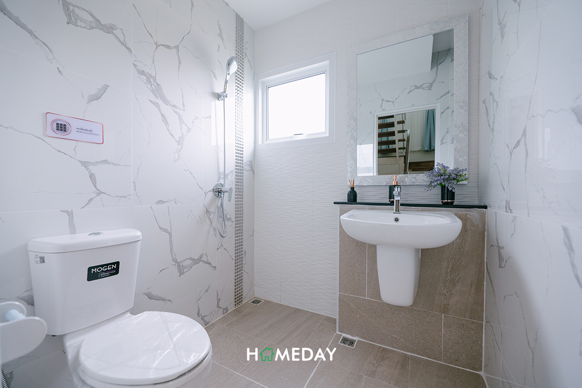 ห้องน้ำชั้นนี้ได้ทุกอย่างเหมือนกันกับห้องน้ำชั้นล่างเลยค่ะ แต่จะได้ความเป็นสัดส่วนมากกว่า และมีขนาดที่ใหญ่ขึ้นนั่นเองค่ะ