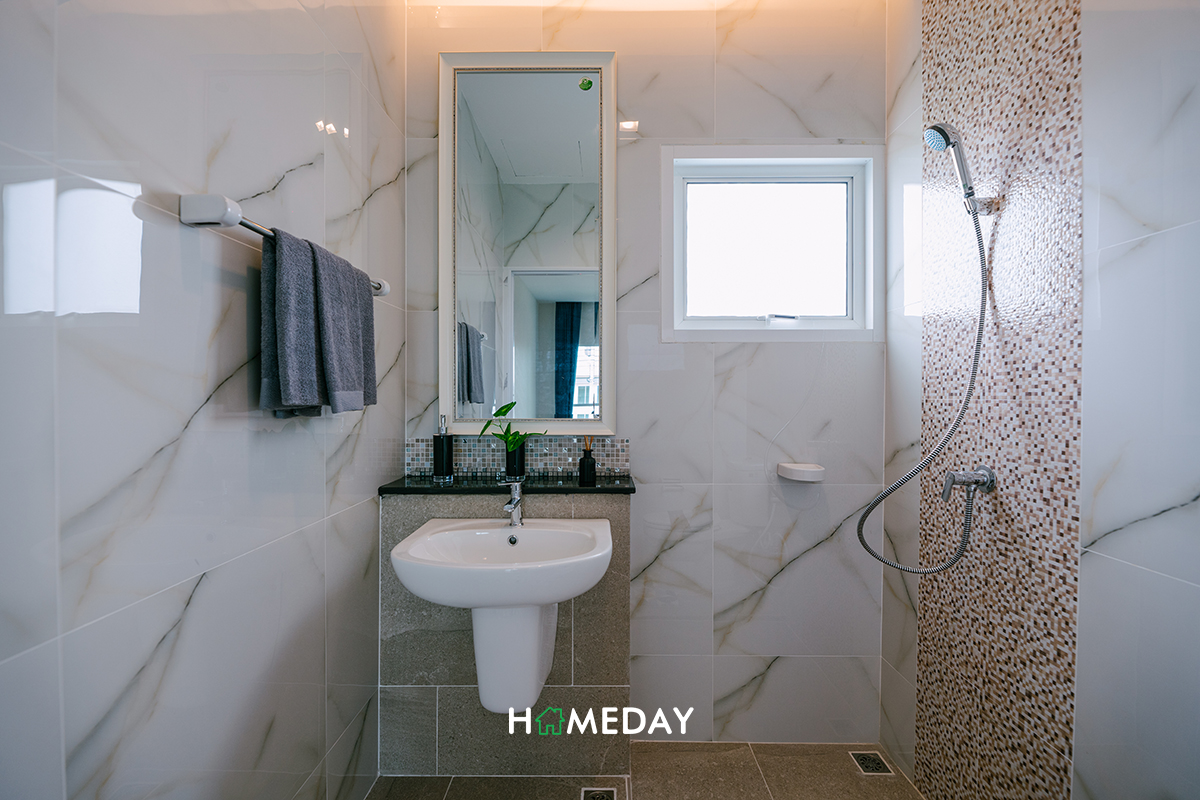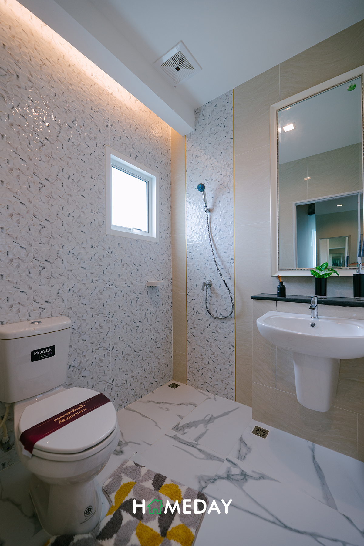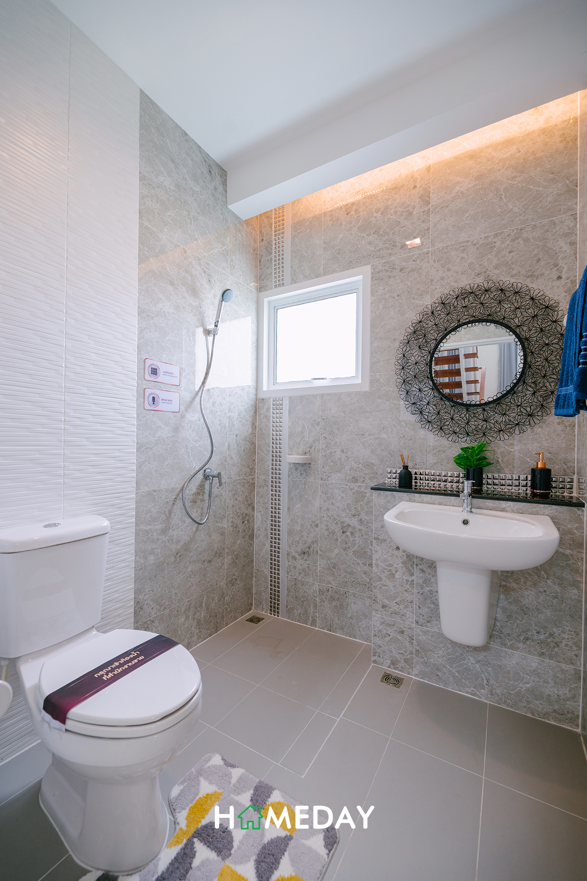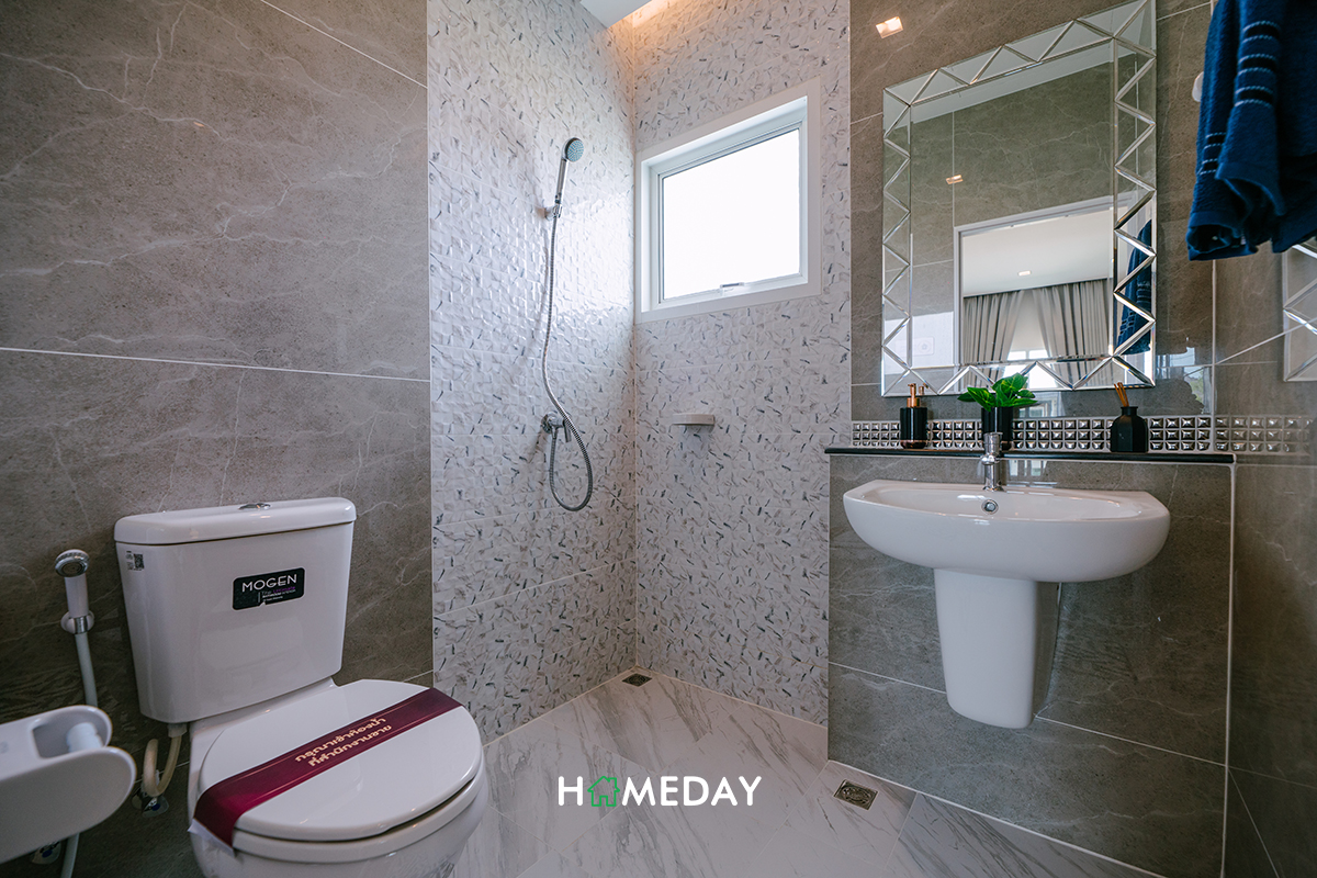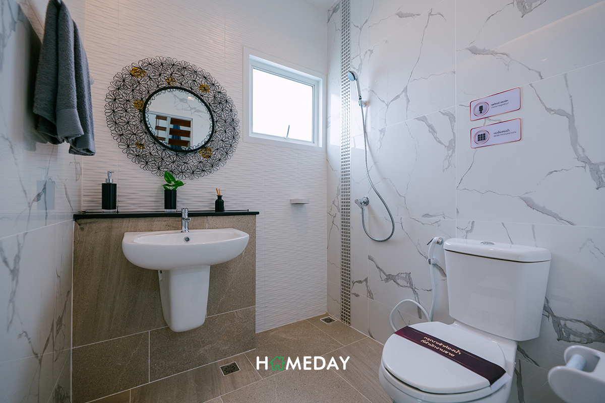 ห้องน้ำภายใน Master Bedroom ได้ฟังก์ชันมาครบครันจัดเต็มเหมือนห้องน้ำชั้นล่างเลยค่ะ ได้ตัว Low Wall มาเหมือนกันเลย สามารถใช้เพิ่มพื้นที่จัดเก็บได้เป็นอย่างดีค่ะ ส่วนบริเวณ Hand Shower ก็สามารถบิลต์ Partition กั้นส่วนเปียก-แห้งเพิ่มเติมได้นะคะ จะได้ง่ายต่อการดูแลทำความสะอาด และได้ความเป็นระเบียบเรียบร้อยเพิ่มมากขึ้นค่ะ