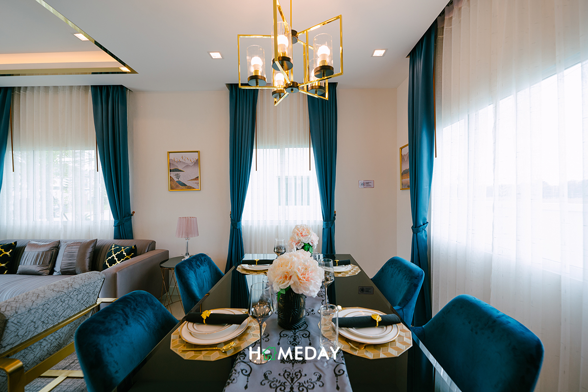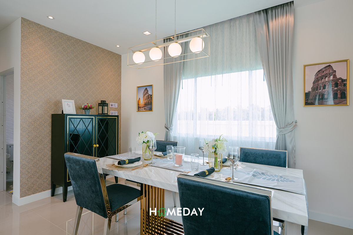 Dining Area เองก็กว้างขวางทีเดียวค่ะ สามารถวางชุดโต๊ะเก้าอี้นั่งรับประทานอาหารได้ 4-6 ที่นั่งเลยค่ะ รอบข้างยังเหลือพื้นที่ให้สามารถวางตู้โชว์หรือชั้นวางของอื่น ๆ ได้อีกค่อนข้างเยอะเลยค่ะ รับรองว่าทุกพื้นที่ใช้สอยจะสามารถใช้ให้เกิดประโยชน์สูงสุดได้อย่างแน่นอน