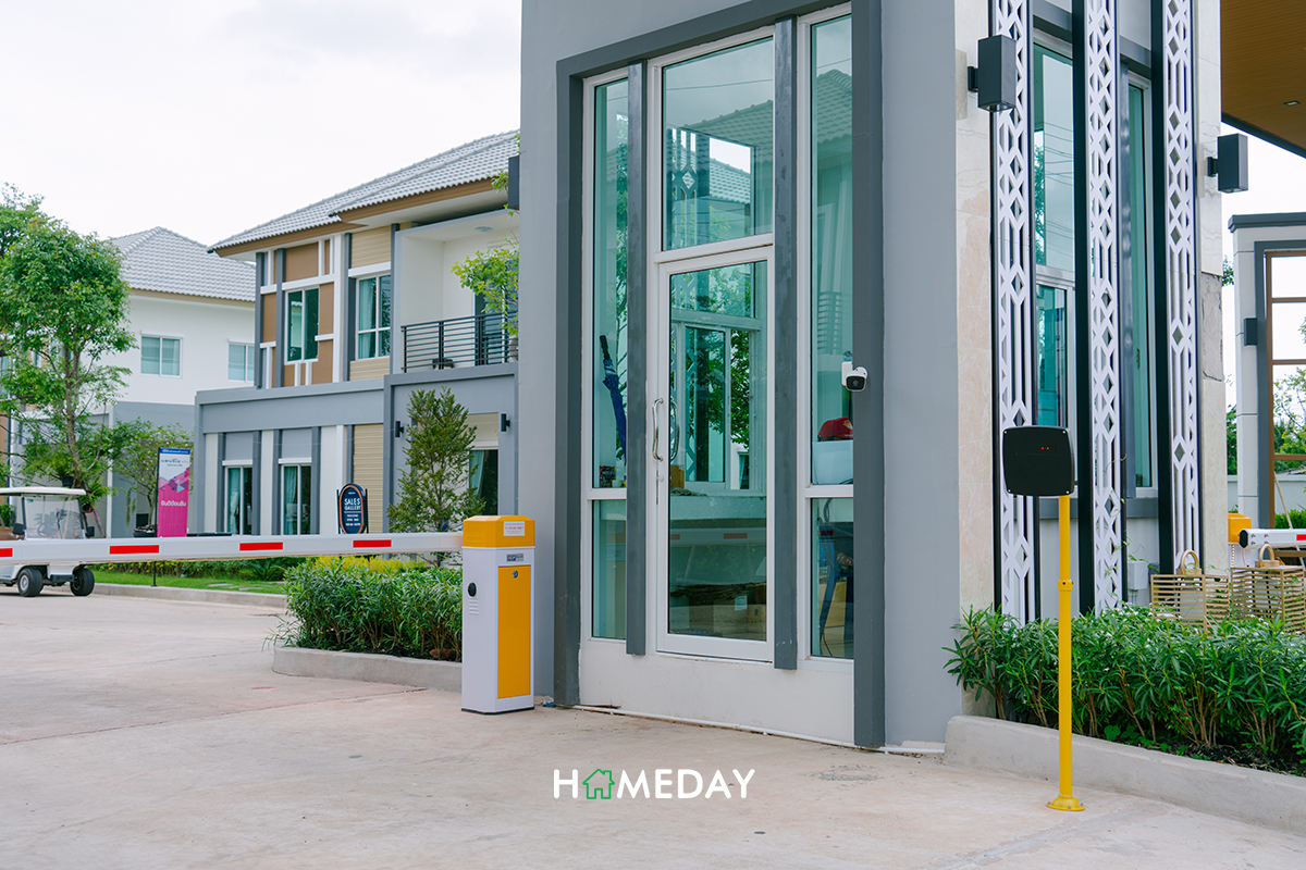 ทางเข้าตัวโครงการลูกบ้านสามารถแตะ Key Card เข้า-ออกได้อย่างสะดวกสบายตามมาตรฐานค่ะ ซุ้มของทางโครงการจะมีกล้อง CCTV คอยจับภาพรถที่เข้า-ออกไว้อยู่เสมอ ทำให้อุ่นใจได้เลยในเรื่องของความปลอดภัยค่ะ ตัวป้อมของพนักงานรักษาความปลอดภัยเป็นกระจกใสรอบทิศทาง สามารถสอดส่องดูแลลูกบ้านได้อย่างทั่วถึง