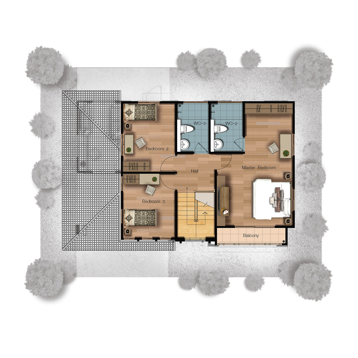 เริ่มกันที่หน้าบ้านจะเห็นว่าด้านหน้าจะได้ช่องแสงขนาดใหญ่และมีระเบียงที่สามารถออกมาใช้งานด้านนอกได้ที่ชั้น 2 และ ชั้น 3 ประตูรั้วเป็นประตูบานเฟี้ยมระแน