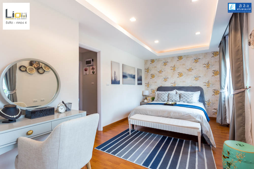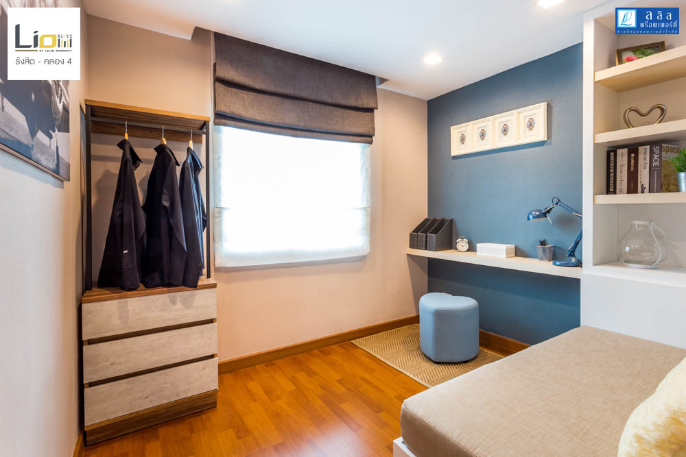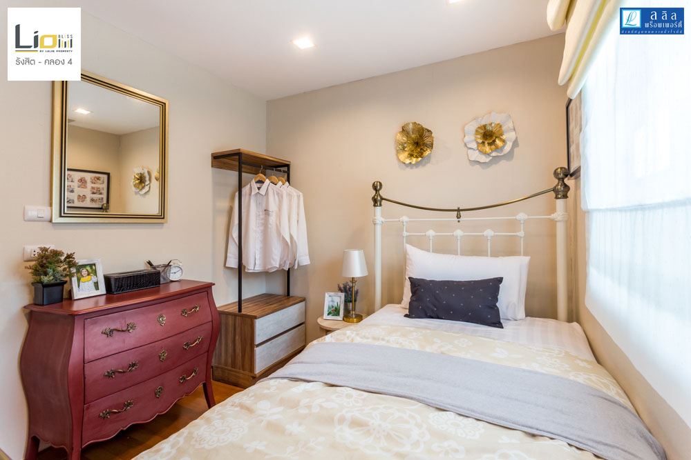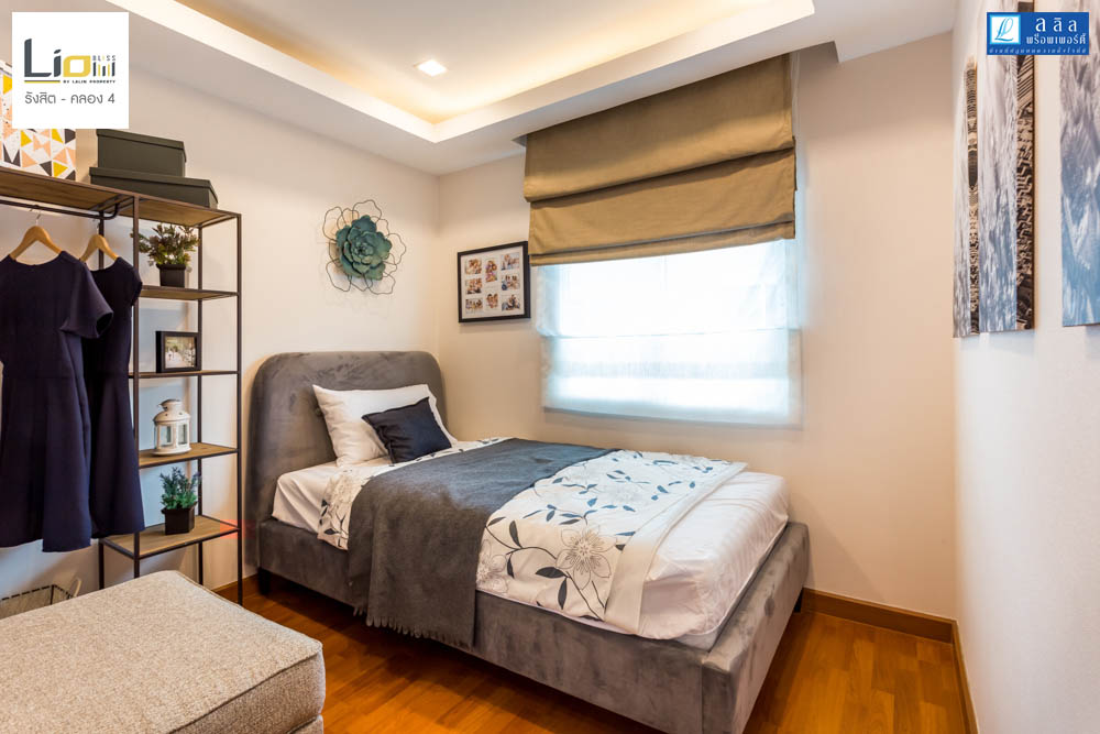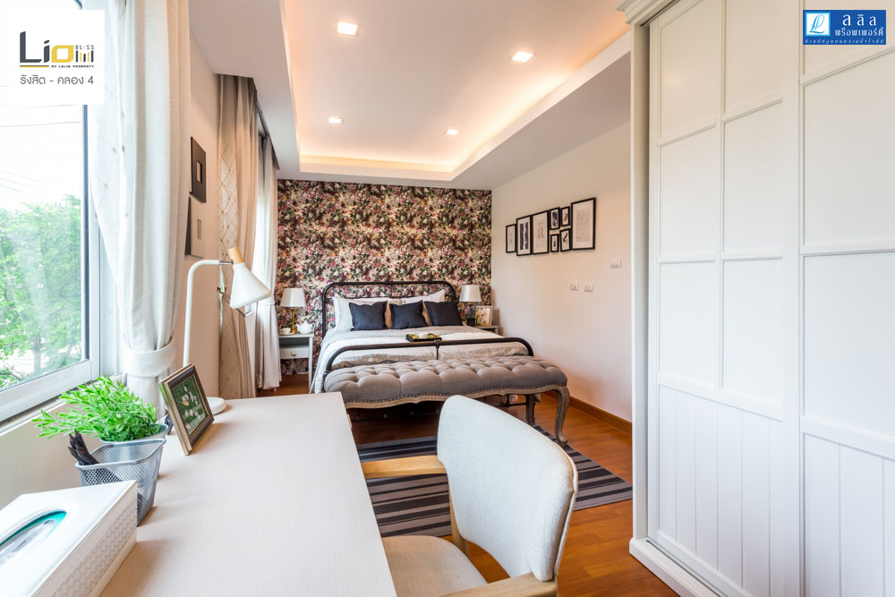 ติดกันเป็น Bedroom 2 ห้องนี้จะมีขนาดใหญ่ขึ้นมาจาก Bedroom 3 ทางโครงการตกแต่งบ้านตัวอย่างให้ดูเป็นสไตล์ของลูกสาวที่มีความหวานในโทนสีชมพู ห้องนี้ได้หน้า