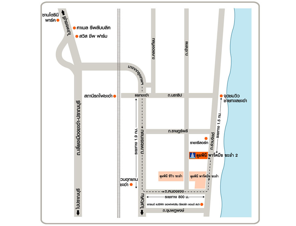 การเดินทาง ทางพิเศษศรีรัชแอร์พอร์ตลิงค์ สถานีมักกะสันรถไฟฟ้า MRT สถานีห้วยขวาง สถานศึกษารร.เตรียมอุดมฯ รัชดา ม.หอการค้าไทย รร.บางกอกทวิวิทย์ รร.นานาชาติ KIS รร.นานาชาติ The Regent’s รร.สมาคมไทย-ญี่ปุ่น