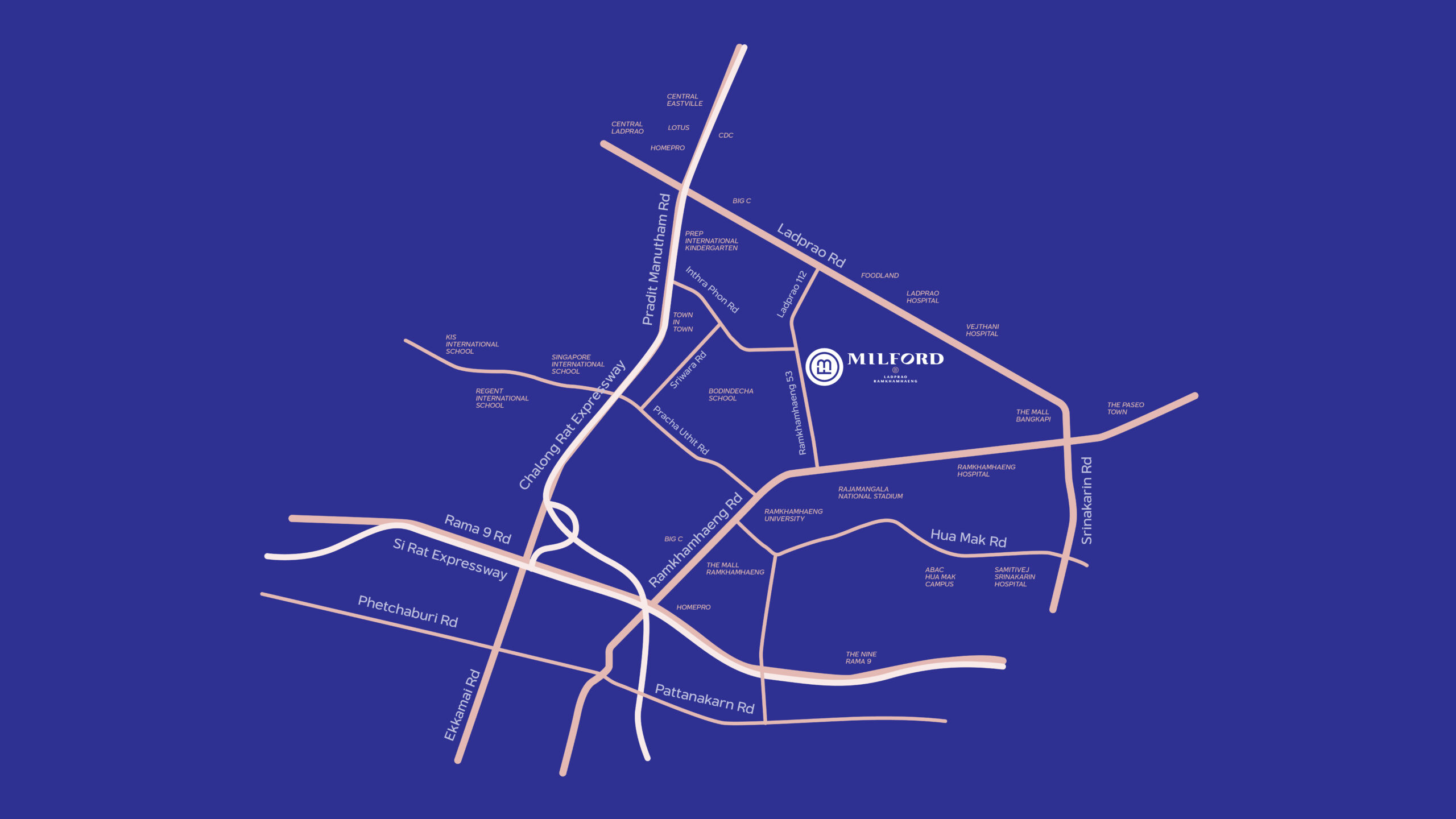 การเดินทาง ใกล้ถนนกรุงเทพ-ชลบุรี (มอเตอร์เวย์)ใกล้ถนนวงแหวนรอบนอกตะวันออกใกล้รถไฟฟ้าสายสีส้ม ทำเลที่ตั้ง ถนนร่มเกล้า แขวงมีนบุรี เขตมีนบุรี กทม. สิ่งอำนวยความสะดวกรอบโครงการ