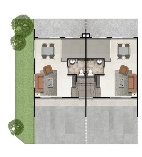 แบบบ้าน : MET 1 หน้ากว้างประมาณ 5.7 เมตร พื้นที่ใช้สอย 111 ตร.ม. 3 ห้องนอน ห้องรับประทานอาหาร 2 ห้องน้ำ ห้องครัว 1 ห้องรับแขก ที่จอดรถ 2 คัน แบบบ้าน : MET 2